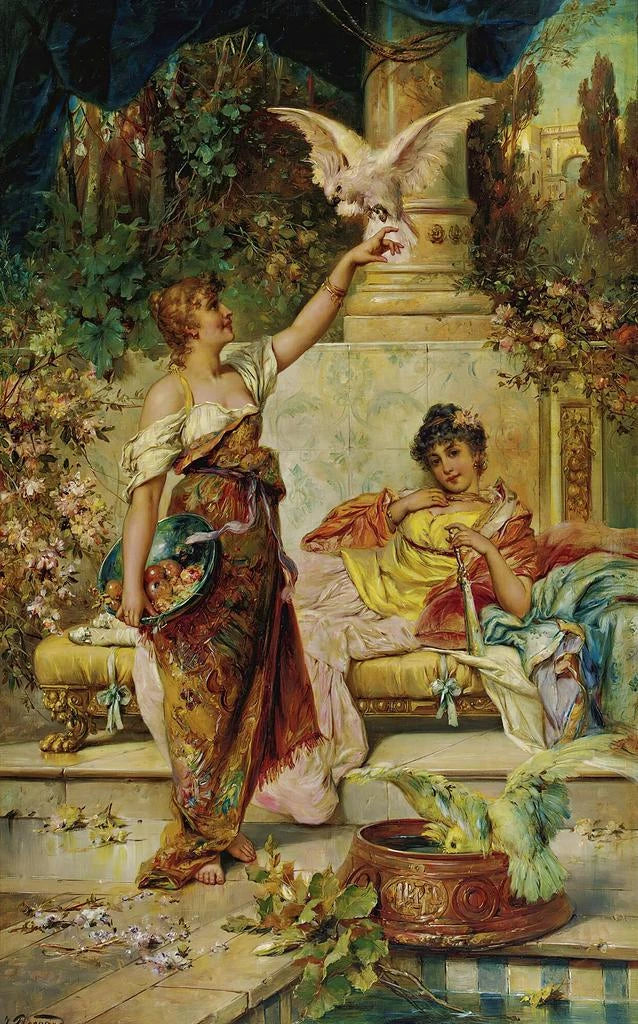Hans Zatzka, activo a finales del siglo XIX, es reconocido por su talento para fusionar el romanticismo y el simbolismo en sus obras. Originario de Viena, fue influenciado por las corrientes artísticas de su época, desarrollando un estilo personal que le es propio. Sus cuadros, a menudo poblados de figuras femeninas idealizadas y paisajes oníricos, reflejan su interés por la belleza y la armonía. Zatzka supo capturar el espíritu de su tiempo, convirtiéndose en una figura destacada del arte vienés, cuyo legado perdura a través de sus creaciones.