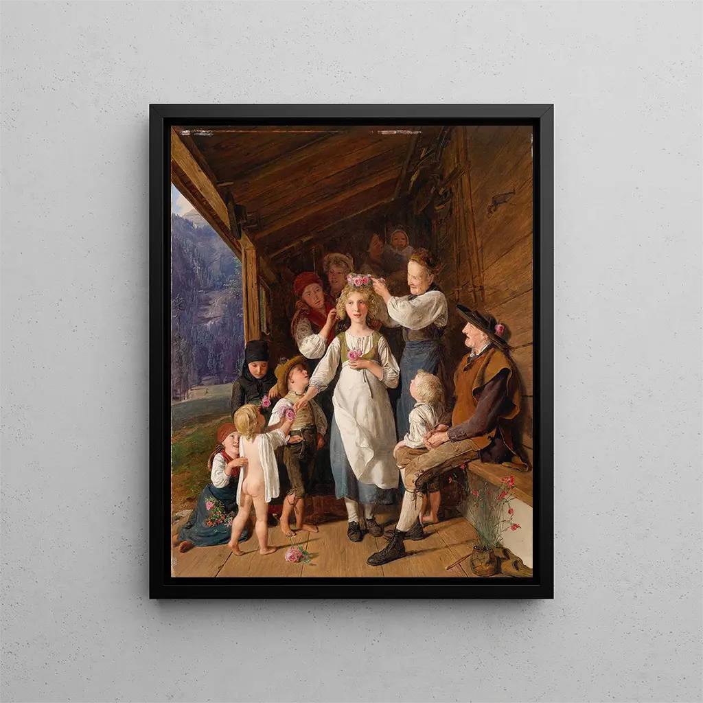 Ferdinand Georg Waldmüller, nacido en 1793, es uno de los artistas más influyentes de su tiempo. Evolucionando en un período donde el arte se libera de las restricciones académicas, se distingue por su capacidad para combinar realismo y romanticismo. Waldmüller se inspira en la vida cotidiana y en las tradiciones populares, buscando inmortalizar instantes simples pero cargados de significado. Su obra es una celebración de la belleza del mundo, donde cada cuadro se convierte en una ventana al alma humana. Como precursor del movimiento naturalista, abrió el camino a muchos artistas que siguieron su ejemplo, buscando representar la realidad con una sensibilidad aumentada. Su influencia perdura, y "El Kranzljungfer" sigue siendo una