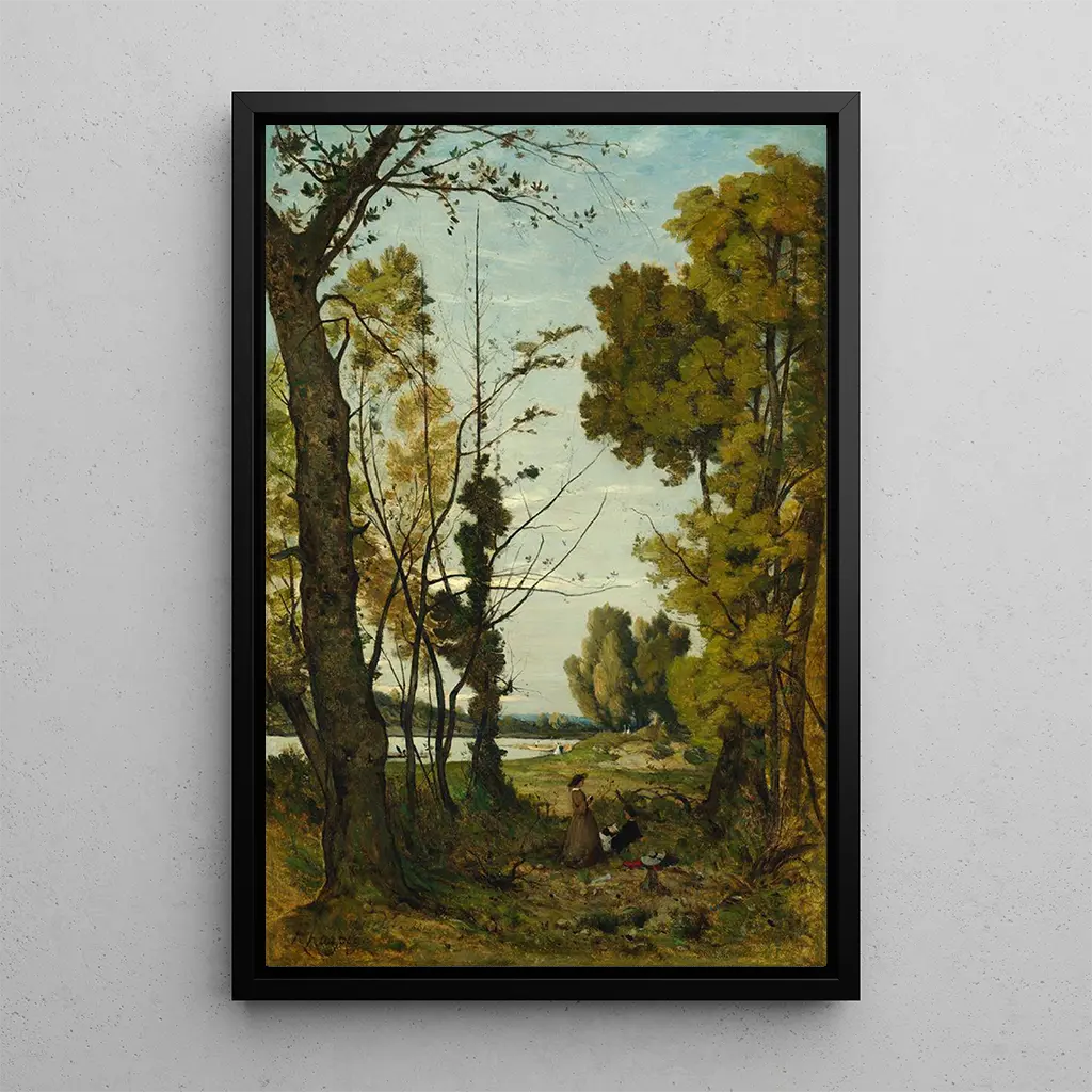 Cuadro Lectura en el bosque - Henri-Joseph Harpignies | Impresión artística