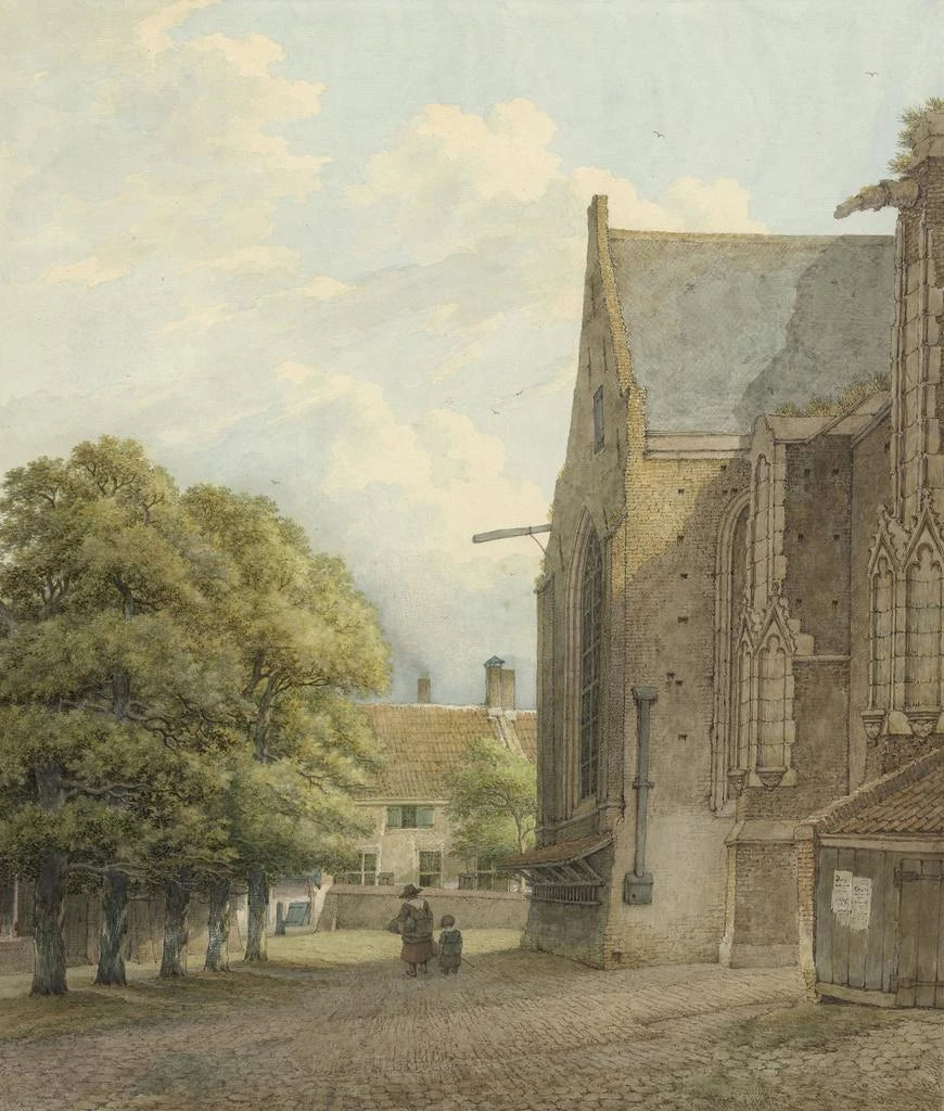El estilo de Daniël Kerkhoff se caracteriza por un enfoque realista, donde cada detalle es cuidadosamente observado y representado con precisión. En "L'église de Rhenen", el artista utiliza una paleta de colores sutil, jugando con las tonalidades para evocar las variaciones de luz a lo largo del día. Las sombras delicadas y los reflejos luminosos en las piedras de la iglesia crean una atmósfera casi poética, donde el tiempo parece suspendido. Esta obra se distingue por su capacidad para evocar una sensación de serenidad y recogimiento, al mismo tiempo que resalta la majestuosidad de la arquitectura religiosa. La composición está equilibrada, cada elemento colocado con cuidado para guiar la mirada del espectador a través del cuadro, revelando así la profundidad de la escena.
