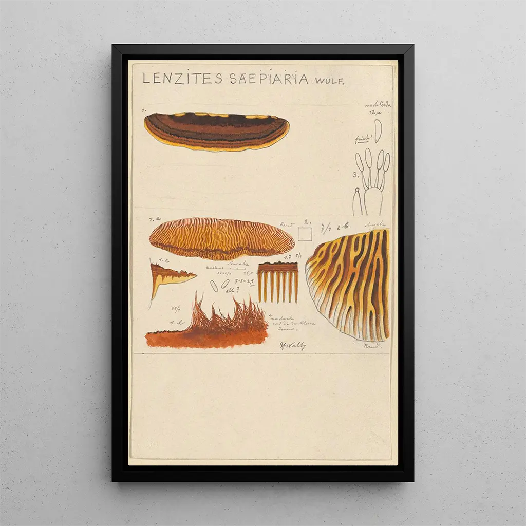 En esta obra cautivadora, Hans Baldung nos invita a sumergirnos en el corazón de la naturaleza con su representación de Lenzites saepiaria, un hongo fascinante. La composición se distingue por sus colores terrosos y matices de verde, evocando una atmósfera pacífica y misteriosa. La técnica de Baldung, que combina realismo y estilización, confiere a la obra una profundidad que atrae la mirada. Los detalles minuciosos de las texturas y las sombras crean una sensación de tridimensionalidad, haciendo casi palpable la presencia del hongo. Esta impresión artística de Lenzites saepiaria es una verdadera oda a la belleza de la naturaleza, que invita a la contemplación y al asombro.