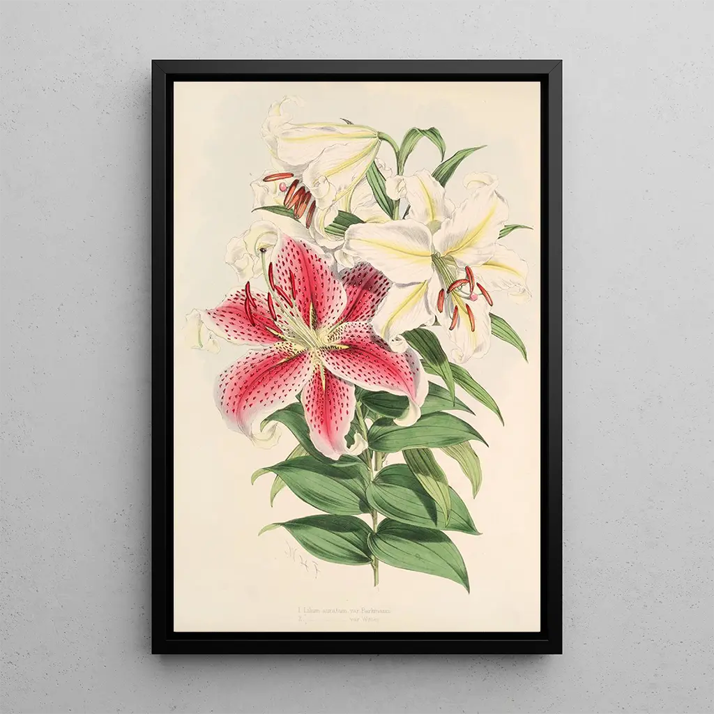Walter Hood Fitch es reconocido como uno de los más grandes ilustradores botánicos del siglo XIX. Nacido en 1817, dedicó su vida al estudio y a la representación de las plantas, influenciado por los avances científicos de su época y la pasión por la botánica. Fitch colaboró con numerosos botánicos de renombre, contribuyendo a publicaciones prestigiosas como "The Botanical Magazine". Su estilo único, caracterizado por una atención meticulosa a los detalles y una paleta de colores vibrantes, ha permitido rendir homenaje a la belleza de las plantas mientras sirve como herramienta educativa. Lilium auratum var Parkmanm es un ejemplo perfecto de su talento y compromiso con la ciencia y el arte.