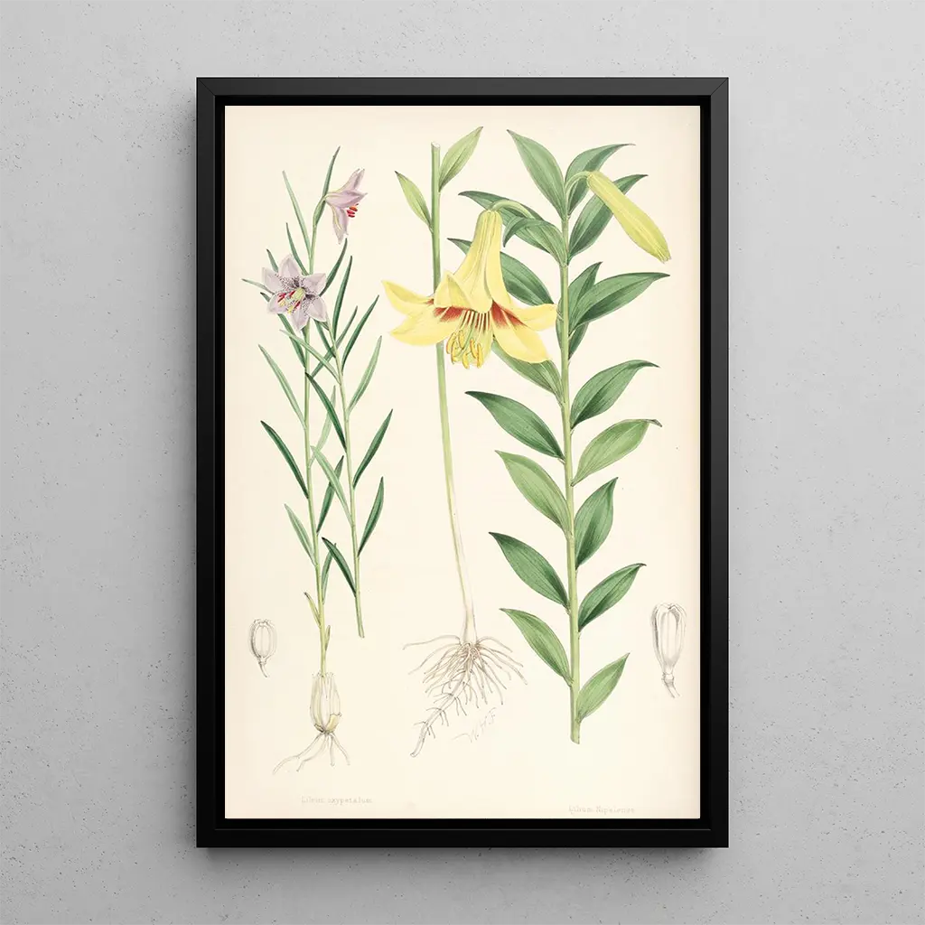 Walter Hood Fitch, reconocido como uno de los más grandes ilustradores botánicos del siglo XIX, supo combinar ciencia y arte con maestría. Su carrera, marcada por colaboraciones con botánicos de renombre, le permitió realizar obras que se han convertido en referencias en el campo. Influenciado por las corrientes artísticas de su tiempo, Fitch desarrolló un estilo único, caracterizado por una atención minuciosa a los detalles y un enfoque realista. Lilium oxypetalum es un ejemplo perfecto de su talento, ilustrando no solo la belleza de las flores, sino también la importancia de la documentación científica en el arte.