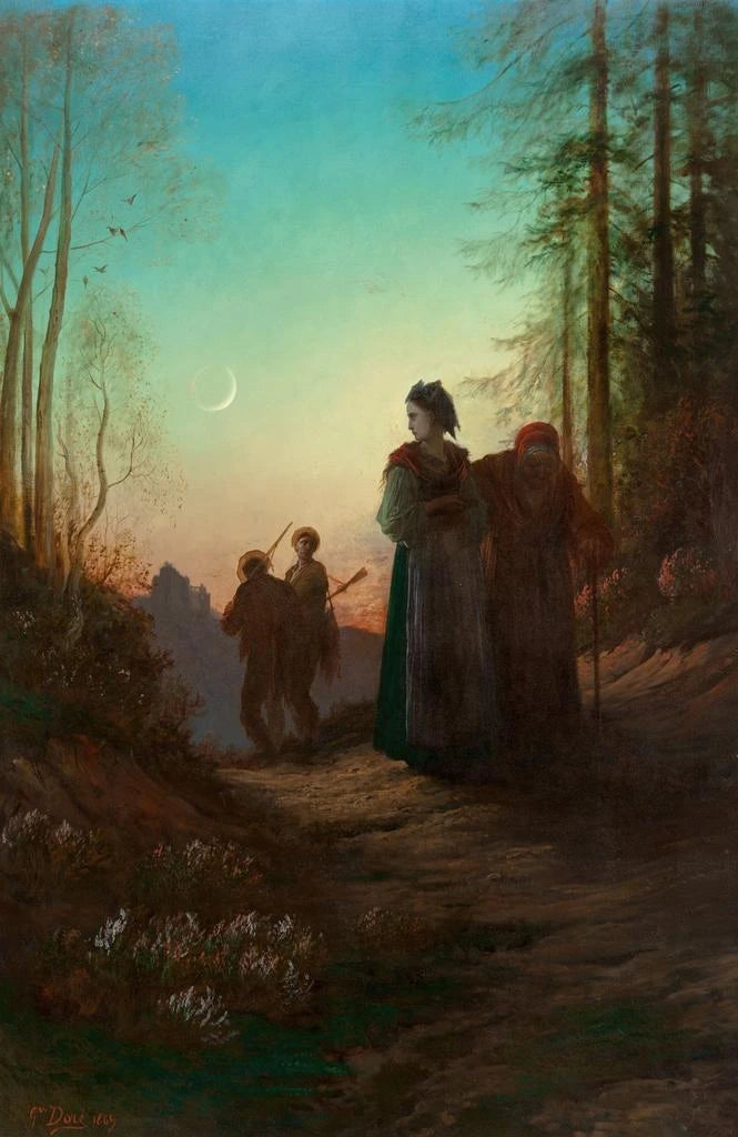 Gustave Doré, nacido en 1832, es un artista polifacético, reconocido por sus ilustraciones y pinturas. Su estilo, arraigado en el romanticismo, se caracteriza por una gran expresividad y una atención especial a los detalles. Influenciado por los grandes maestros de su época, supo desarrollar un lenguaje visual único que trasciende los géneros. Doré también fue un pionero en la ilustración de libros, colaborando con autores como Dante y Cervantes. Su obra, aunque variada, permanece profundamente arraigada en la naturaleza y los paisajes, testimonio de su amor por la belleza del mundo que lo rodea.
