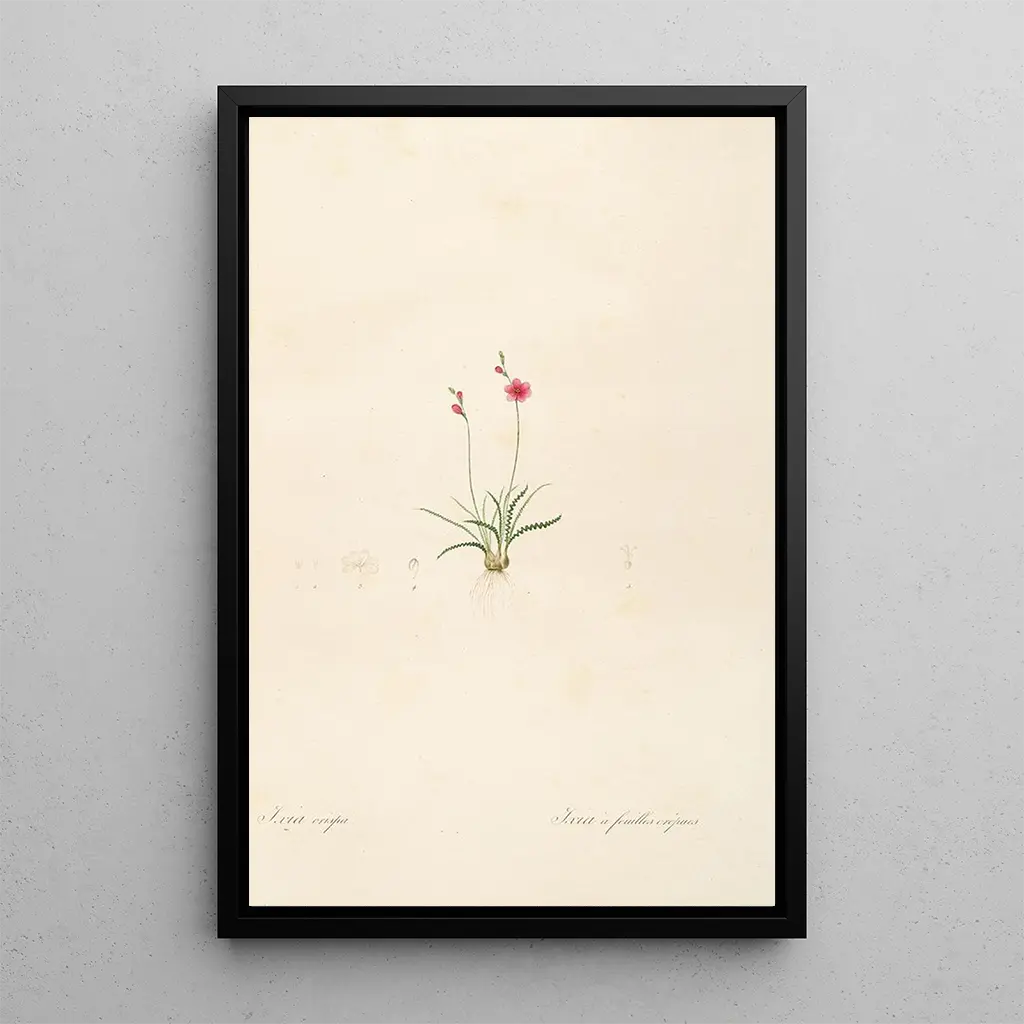 En esta impresión artística de la obra "Les liliacées Pl13", Pierre Joseph Redouté nos invita a sumergirnos en un universo floral de una delicadeza inigualable. Los colores pastel, que van desde el rosa suave hasta el blanco brillante, se entrelazan armoniosamente, creando una atmósfera dulce y relajante. La técnica de la gouache, dominada a la perfección, permite reproducir cada detalle de las flores con una precisión notable. Las liliacées, representadas con cuidado, parecen casi vivas, listas para florecer ante nuestros ojos. Este lienzo es una verdadera oda a la naturaleza, capturando la esencia misma de la floración.