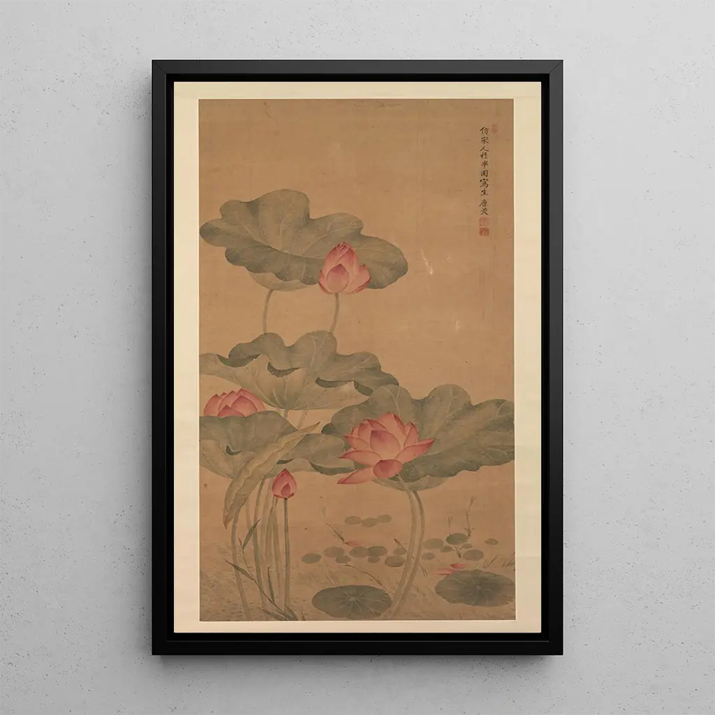 La impresión artística Lotus rojo y pez de Tang Guang es una obra cautivadora que celebra la armonía entre la fauna y la flora. Los colores vivos del loto, contrastando con la suavidad de los tonos acuáticos, crean una escena vibrante y tranquilizadora. La técnica de pintura con tinta, típica del arte chino, permite al artista capturar la ligereza de los movimientos de los peces y la majestuosidad de las flores. Esta obra evoca una sensación de paz interior, invitando al espectador a sumergirse en un mundo de tranquilidad y belleza natural.