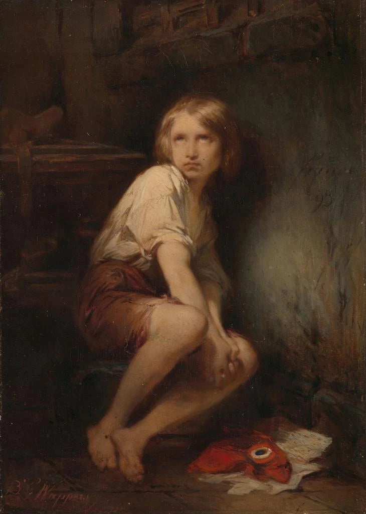 Gustaf Wappers, pintor belga del siglo XIX, es reconocido por sus obras históricas que capturan momentos clave de la historia europea. Formado en la Academia real de bellas artes de Bruselas, fue influenciado por el neoclasicismo y el romanticismo, buscando transmitir emociones fuertes a través de sus composiciones. Wappers a menudo eligió temas históricos, como Louis XVII, para evocar reflexiones sobre la condición humana y el paso del tiempo. Su obra se caracteriza por una gran maestría técnica y una sensibilidad particular a los dramas históricos, convirtiéndolo en un artista imprescindible de su época.