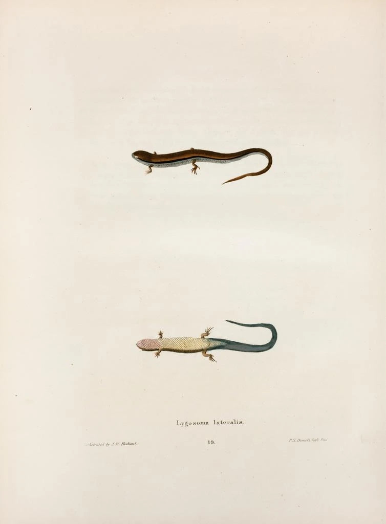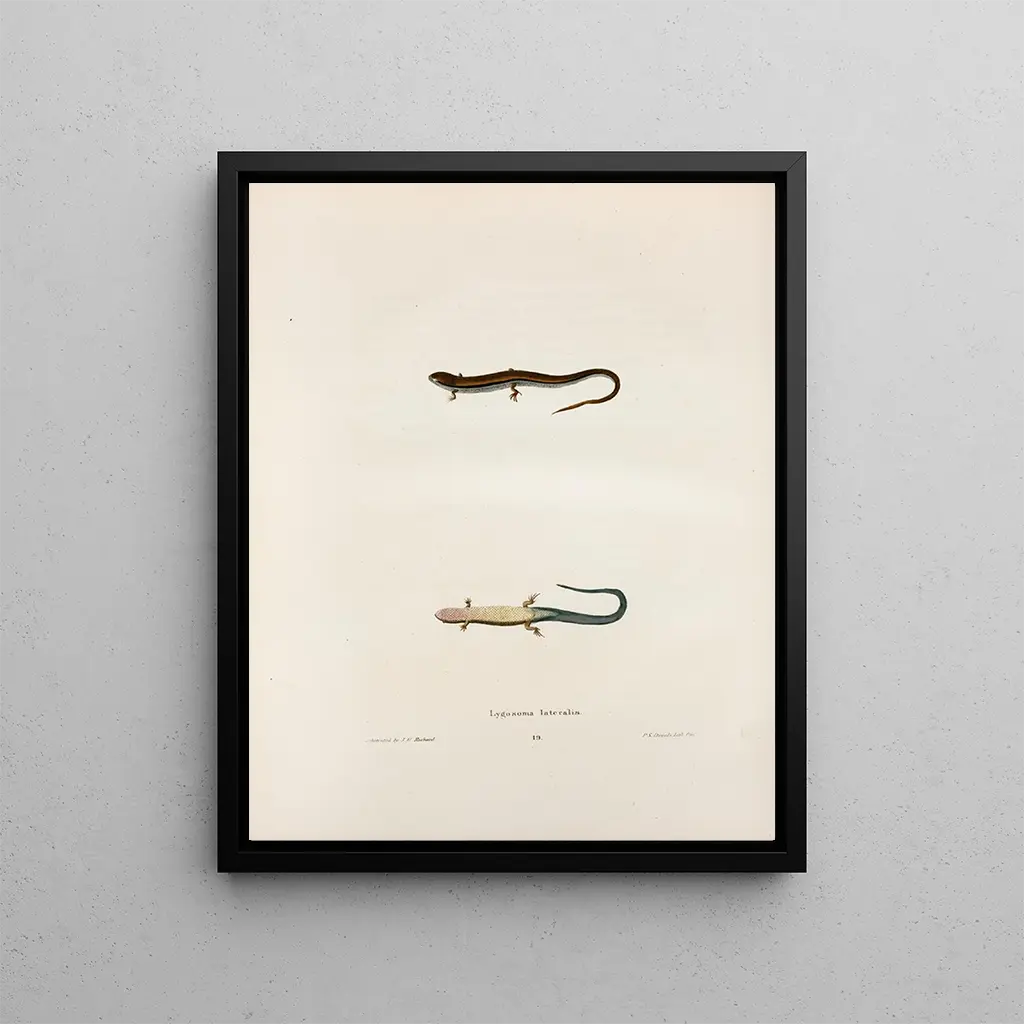 Reproducción artística de Lygosoma lateralis por John Edwards Holbrook, perfecta para decorar tu hogar con un toque de naturaleza y elegancia. Disponible en diferentes tamaños y acabados para adaptarse a tu estilo. Añade esta obra maestra a tu colección o regálala a un amante del arte y la herpetología.