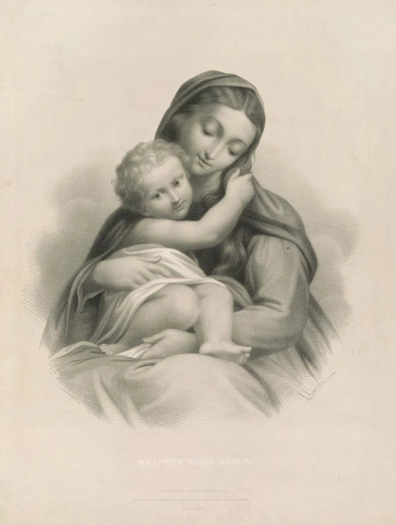 John H. Bufford's Sons, célèbre por sus ilustraciones y sus impresiones artísticas, nos presenta aquí "Madonna della Scala", una obra que rinde homenaje al arte sagrado. Esta representación de la Virgen María, a menudo asociada con la devoción y la espiritualidad, evoca una atmósfera de serenidad y protección. La belleza de la composición y la delicadeza de los detalles hacen de esta obra una opción ideal para quienes buscan integrar elementos espirituales en su decoración interior. Las obras religiosas siguen inspirando a los decoradores modernos, aportando una dimensión de profundidad y reflexión. Una impresión artística de esta obra en Artem Legrand podría enriquecer su espacio con un toque de espiritualidad y belleza atemporal.