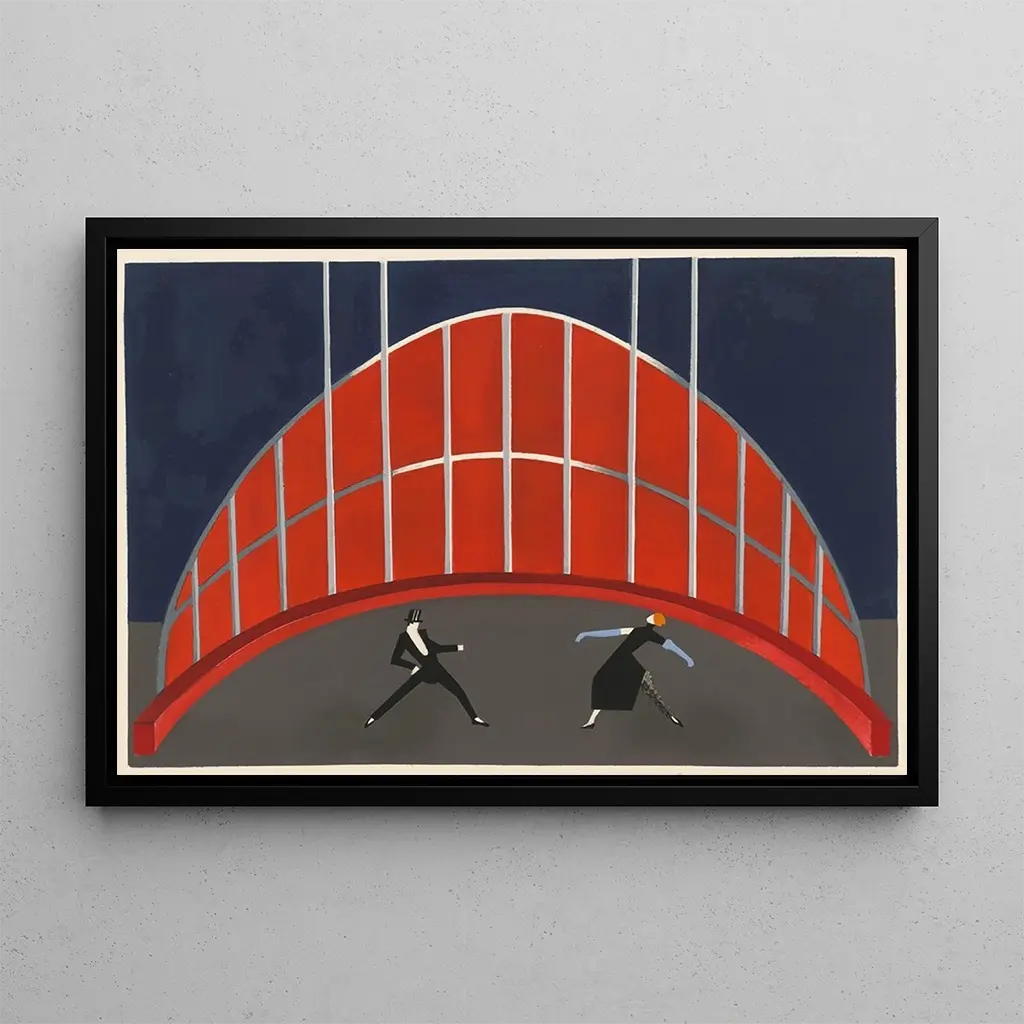 La impresión artística "Maquetas de teatro 7" de Alexandra Exter es una verdadera celebración del arte teatral. Esta obra, rica en colores vibrantes y formas audaces, evoca la imaginación desbordante de la artista. Las líneas dinámicas y las composiciones geométricas crean una atmósfera vibrante, donde cada elemento parece bailar sobre el lienzo. Exter, con su estilo único, logra capturar la esencia misma del teatro, transformando maquetas en verdaderas obras de arte. Esta pieza nos transporta a un universo donde la escena cobra vida, invitando al descubrimiento y a la maravilla.