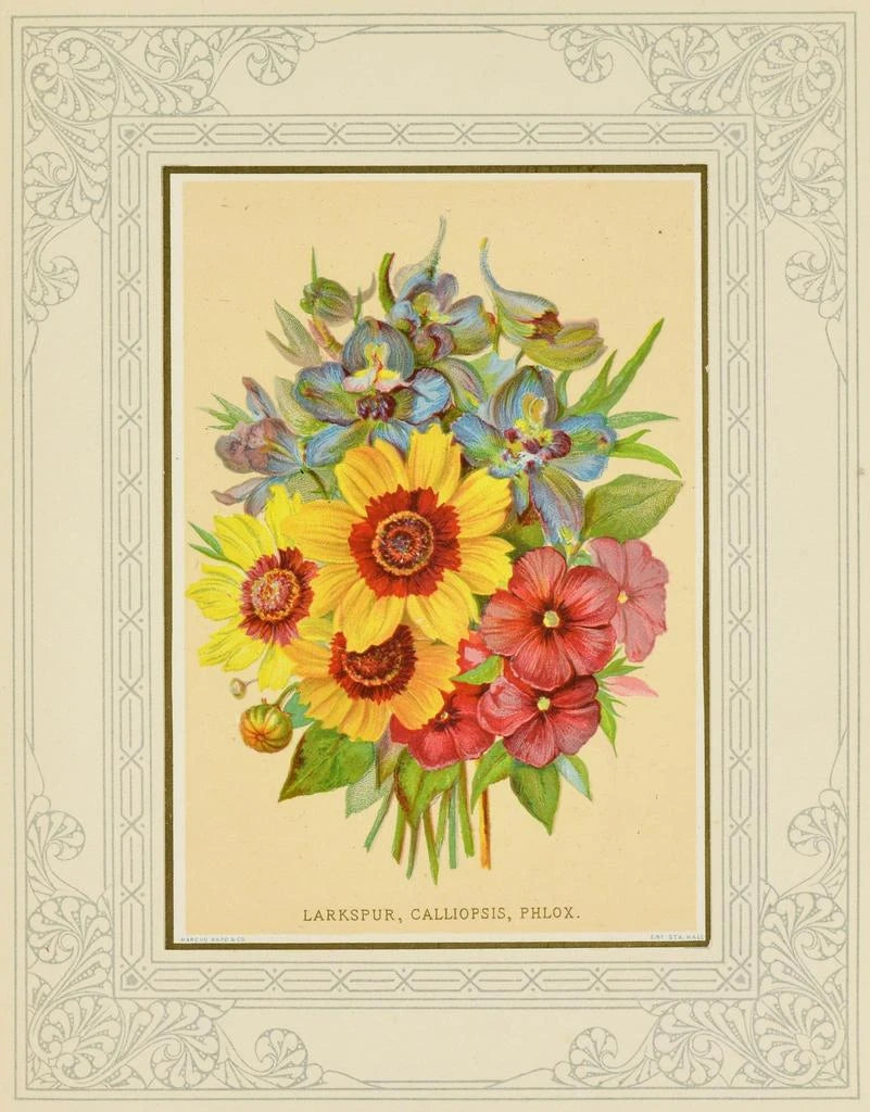 Impresión artística | Delphinium, calliopsis, phlox - Marcus Ward & Co.