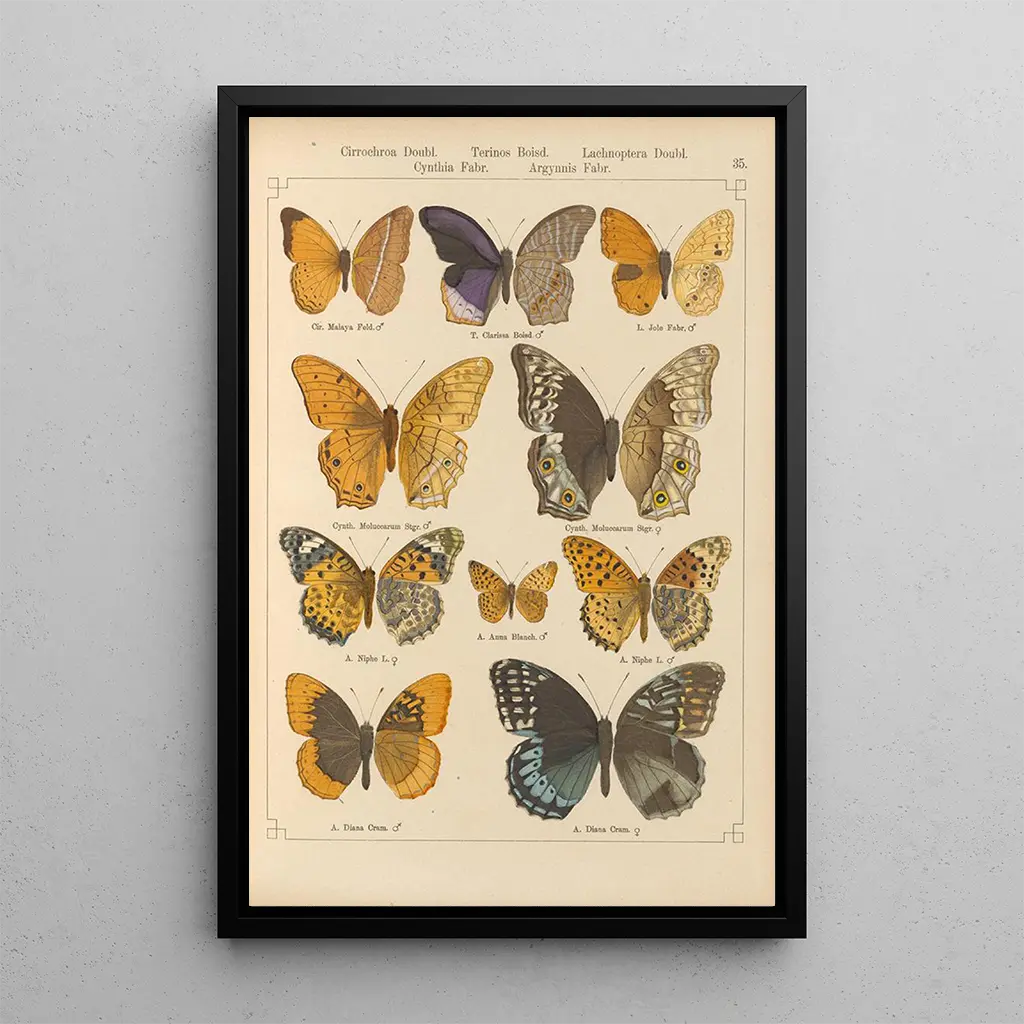 Los "Papillons exotiques Pl035" de Otto Staudinger son una verdadera oda a la diversidad y a la belleza de las especies. Esta obra, rica en detalles, presenta mariposas con patrones fascinantes, cada una de ellas siendo una obra de arte en sí misma. Los colores vibrantes, que van desde rojos intensos hasta verdes exuberantes, crean una armonía visual cautivadora. La técnica de la acuarela, con sus matices delicados, confiere a la obra una ligereza y una fluidez que recuerdan el movimiento gracioso de las mariposas en la naturaleza. Esta impresión artística invita a la evasión y a la admiración ante la riqueza del mundo vivo.