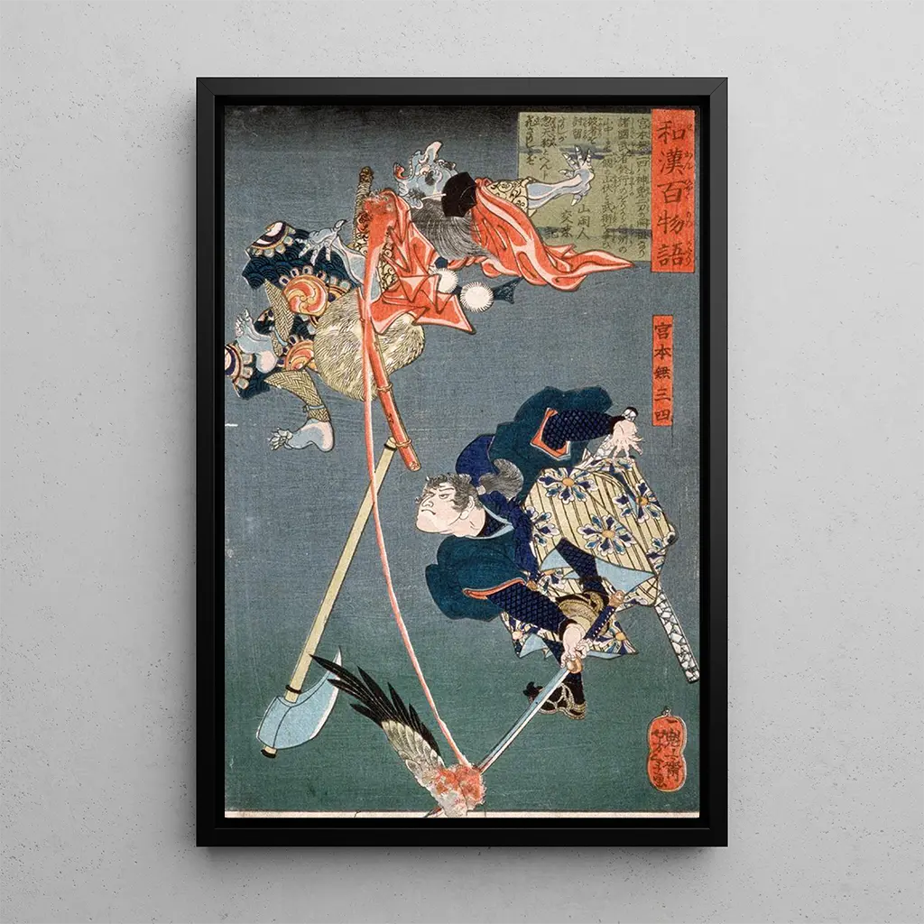 Impresión artística | Miyamoto Musashi cortando un tengu - Tsukioka Yoshitoshi