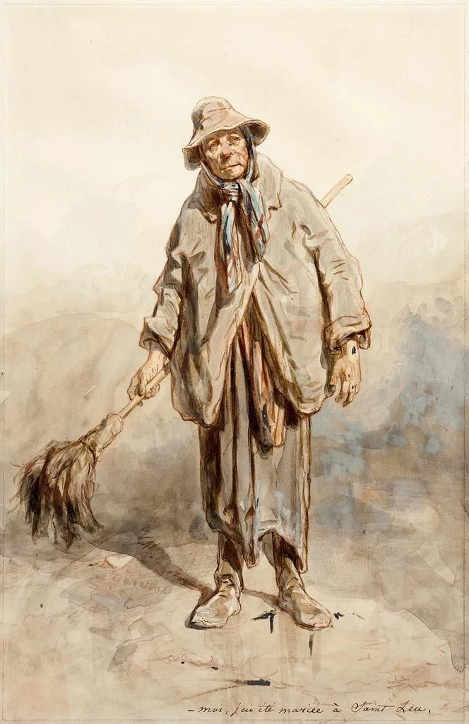 Paul Gavarni, né en 1804, est reconnu pour ses talents de caricaturiste et d'illustrateur, capturant avec brio les mœurs de son temps. Influencé par le romantisme et le réalisme, il a su dépeindre la société parisienne avec un regard critique et humoristique. Gavarni a travaillé pour de nombreuses publications, notamment "Le Charivari", où ses œuvres ont rencontré un grand succès. Son style distinctif, caractérisé par des lignes fluides et des compositions dynamiques, a marqué son époque et continue d'influencer les artistes contemporains. "Moi j'ai été marié à Saint-Leu" s'inscrit parfaitement dans cette tradition, offrant un aperçu des relations sociales et des interactions humaines.