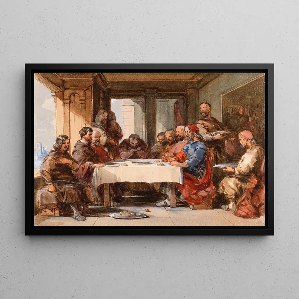 Dans cette impresión artística de Moines à table, George Cattermole nous plonge dans une atmosphère paisible et contemplative. La composition met en avant des moines réunis autour d'une table, illustrant un moment de partage et de recueillement. Les couleurs chaudes et terreuses, typiques de l'époque, apportent une sensation de chaleur et d'intimité. La technique de la peinture à l'huile permet de rendre les détails des robes des moines ainsi que la texture des aliments, créant une ambiance vivante et authentique. Ce tableau invite à une réflexion sur la vie monastique et la simplicité des plaisirs quotidiens.