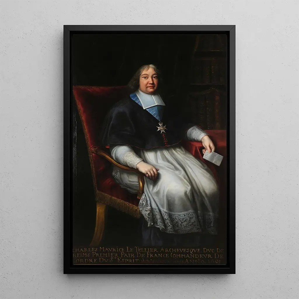 La impresión artística de Monseigneur Charles-Maurice Le Tellier, realizada por Pierre Mignard, revela un personaje lleno de majestad. El cuadro, por sus colores ricos y sus detalles meticulosos, captura la esencia misma de la aristocracia del siglo XVII. Los drapeados suntuosos de la vestimenta eclesiástica, realzados con matices dorados, contrastan con el fondo oscuro que acentúa la imponente estatura del prelado. Mignard, maestro del retrato, logra transmitir una atmósfera de respeto y autoridad, invitando al espectador a contemplar el poder espiritual y temporal de su sujeto.