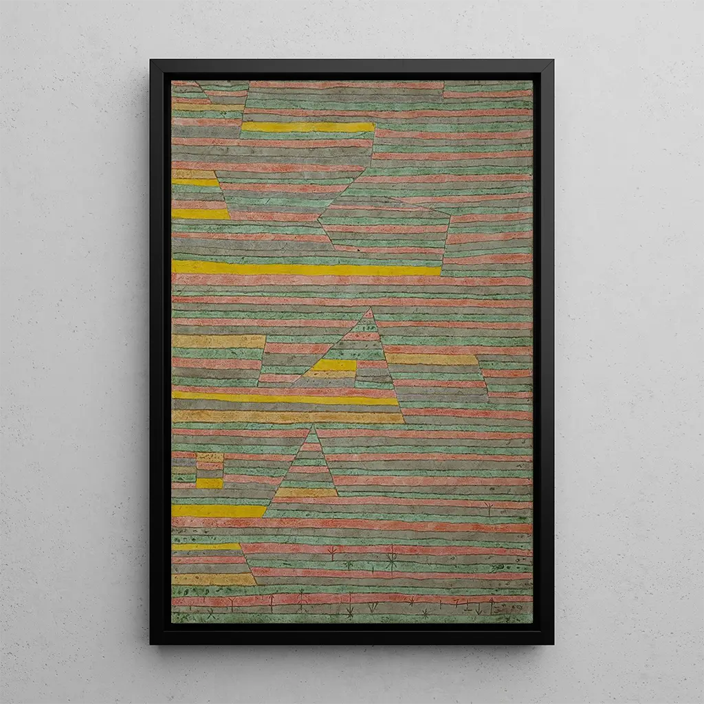 Paul Klee, artista suizo nacido en 1879, es una de las figuras emblemáticas del movimiento expresionista y del Bauhaus. Su carrera, rica y variada, está marcada por influencias múltiples, que van desde el arte africano hasta la música, pasando por el arte popular. Klee supo desarrollar un lenguaje visual singular, donde la abstracción y la figuración se encuentran. "Monuments à G" se inscribe en un período donde el arte moderno busca liberarse de las convenciones tradicionales, y Klee, mediante su enfoque lúdico y poético, contribuye a redefinir las fronteras del arte. Su legado perdura, inspirando a numerosos artistas contemporáneos a explorar las dimensiones emocionales y simbólicas del color y de la forma.
