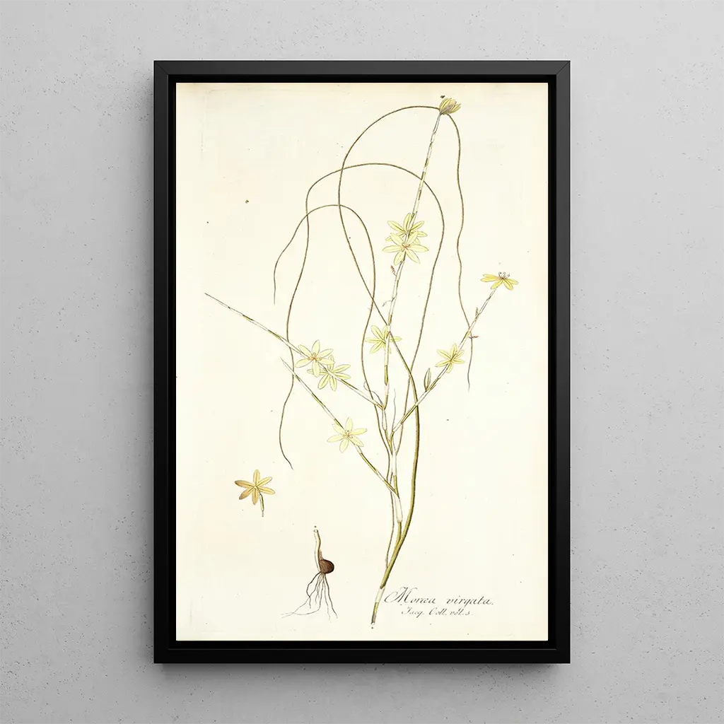 Nikolaus Joseph Freiherr von Jacquin, botánico e ilustrador del siglo XVIII, supo combinar arte y ciencia en sus obras. Sus estudios profundos de las plantas, realizados durante sus viajes, permitieron documentar muchas especies aún desconocidas en su época. Influenciado por las corrientes científicas de su tiempo, contribuyó al auge de la ilustración botánica, rindiendo homenaje a la belleza de la naturaleza y proporcionando referencias precisas para los botánicos. La impresión artística de Moraea virgata es un ejemplo perfecto de su talento y compromiso con la ciencia.