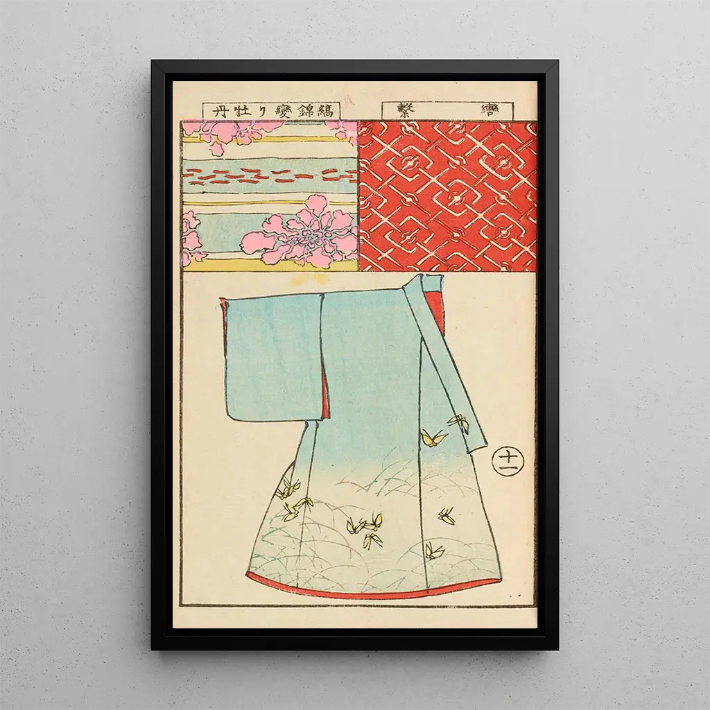 La impresión artística Moyo bijutsu benran Pl13 de Hironobu Asai evoca una atmósfera impregnada de serenidad y refinamiento. Los colores suaves, combinando matices de azul y rosa, crean un equilibrio visual cautivador. La técnica de la estampa japonesa, con sus detalles minuciosos y sus líneas fluidas, invita a una contemplación prolongada. Cada elemento de la composición parece bailar en armonía, transportando al espectador a un universo donde el tiempo parece suspendido. Esta obra es una verdadera oda a la belleza, reflejando la esencia misma del arte japonés.