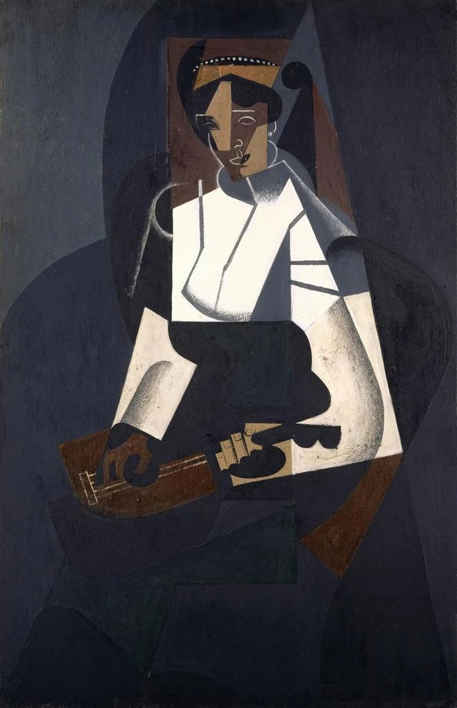 Juan Gris, nacido en 1887 en Madrid, es uno de los principales representantes del movimiento cubista, junto a Picasso y Braque. Su estilo se caracteriza por un enfoque más estructurado y colorido del cubismo, integrando elementos de la tradición española. Influenciado por el fauvismo y el simbolismo, Gris supo desarrollar una estética única que le permitió destacarse en el panorama artístico de su época. "Femme à la mandoline" demuestra su habilidad para fusionar abstracción y representación, explorando temas de música y feminidad. Su obra continúa inspirando y fascinando, revelando la importancia de su contribución al arte moderno.