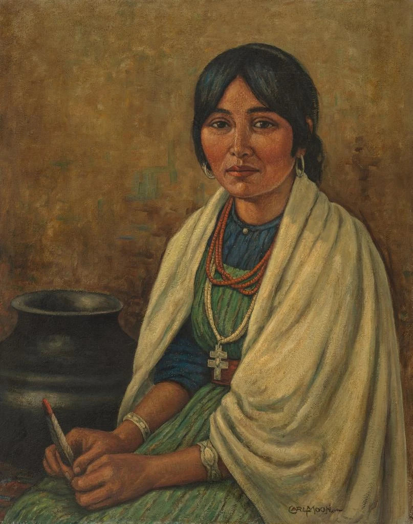 Carl Moon, nacido en 1878, es un artista cuyo recorrido está profundamente arraigado en la historia del arte estadounidense. Criado en un entorno artístico, desarrolla rápidamente un interés por las culturas indígenas, que explora a través de sus viajes por el suroeste de Estados Unidos. Su compromiso con la representación auténtica de los pueblos nativos se manifiesta en sus obras, que combinan respeto y admiración. Moon no se limita a pintar retratos; busca capturar el alma de los sujetos que representa, a través de un diálogo entre el arte