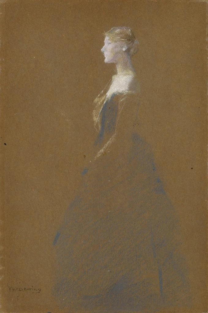 Thomas Dewing, activo a finales del siglo XIX y principios del XX, suele asociarse con el movimiento impresionista estadounidense. Su carrera está marcada por una exploración de los temas de la feminidad y la naturaleza, influenciada por sus contemporáneos y por las corrientes artísticas europeas. Dewing supo desarrollar un estilo único, combinando una sensibilidad moderna con técnicas tradicionales. "Femme en robe bleue" encarna perfectamente esta búsqueda de armonía entre el hombre y la naturaleza, al tiempo que destaca la belleza atemporal de sus modelos femeninos, a menudo representados en poses contemplativas.