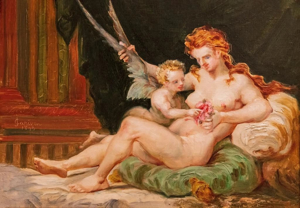 Cette œuvre captivante de Jean-Baptiste Cariven, intitulée "Femme tenant les ailes de l'amour", dépeint une figure féminine délicate, enveloppée dans une atmosphère de douceur et de passion. Les couleurs pastel, mêlant des teintes de rose et de bleu, créent une harmonie visuelle qui évoque la sérénité. La technique de Cariven, caractérisée par des coups de pinceau fluides et précis, donne vie à cette femme, dont l'expression douce et rêveuse invite à la contemplation. Les ailes de l'amour, symboles de liberté et de protection, ajoutent une dimension poétique à cette scène, faisant de cette impresión artística un véritable bijou artistique.