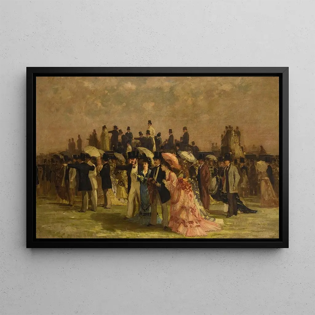 Mujeres elegantes en las carreras: una danza de la moda y del movimiento En esta obra vibrante, Louis Abel-Truchet captura la efervescencia de un día de carreras, donde mujeres elegantes se desplazan con gracia. Los colores vibrantes y los detalles refinados de los vestidos evocan una atmósfera de lujo y sofisticación. La técnica del artista, combinando impresionismo y realismo, da vida a cada personaje, mientras que la difuminación de los fondos sugiere movimiento y la emoción del evento. Los rostros de las mujeres, aunque estilizados, transmiten una profundidad emocional, invitando al espectador a sumergirse en esta escena animada. Louis Abel-Truchet: un testigo de la Belle Époque Louis Abel-Truchet, activo a finales del siglo XIX y principios del XX, es un artista emblemático de la Belle Époque. Influenciado por las corrientes impresionistas, se distingue por su capacidad para capturar la vida parisina con un toque de ligereza y refinamiento. Su carrera, marcada por exposiciones en el Salón, testimonia la importancia de su obra en el panorama artístico de su tiempo. Truchet, como observador atento de la sociedad, inmortaliza momentos de la vida cotidiana, haciendo de sus cuadros ventanas a una época ya pasada. Una adquisición decorativa con múltiples ventajas La impresión artística de Mujeres elegantes en las carreras es una pieza decorativa ideal para enriquecer su interior. Ya sea en una sala de estar, una oficina o un dormitorio, este cuadro aporta un toque de sofisticación y dinamismo. Su calidad de impresión artística garantiza fidelidad a los detalles de la obra original, permitiendo disfrutar de su atractivo estético a diario. Al elegir esta tela, no solo invita al arte en su espacio, sino también una parte de la historia y la cultura de la Belle Époque, creando así un ambiente único y refinado.