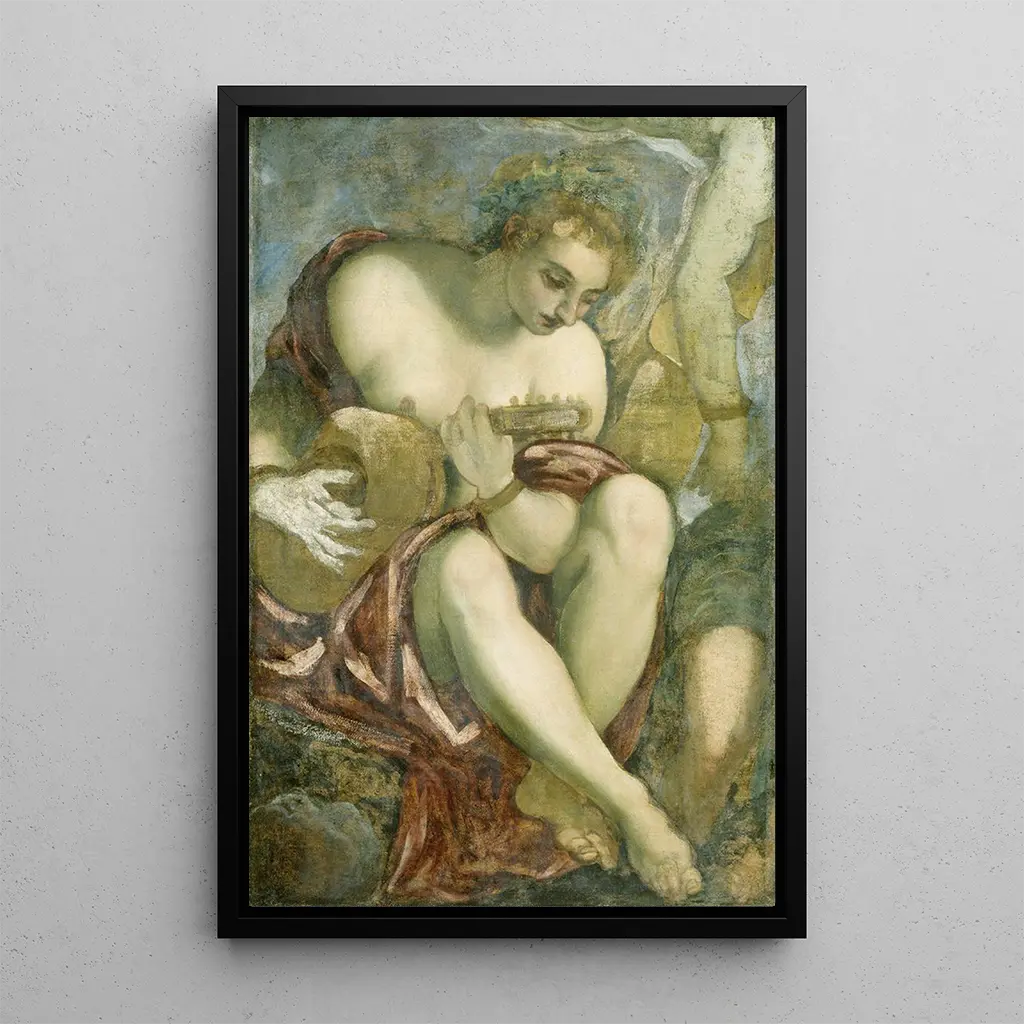Jacopo Tintoretto, nacido en 1518 en Venecia, es uno de los artistas más influyentes del Renacimiento. Su estilo, marcado por un uso audaz de la luz y el movimiento, revolucionó la pintura de su época. Influenciado por Miguel Ángel y Tiziano, Tintoretto supo desarrollar un enfoque único, combinando realismo y dramatización. Sus obras, a menudo cargadas de emoción, reflejan las preocupaciones espirituales y sociales de su tiempo. Como miembro clave de la escuela veneciana, dejó un legado duradero, inspirando a generaciones de artistas en toda Europa. La representación de la Musa con laúd testimonia su habilidad para capturar la esencia de la creatividad humana.