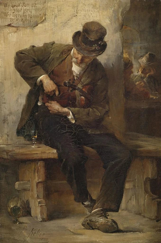 Cuadro Músico callejero frente a una posada - Friedrich von Keller | Impresión artística