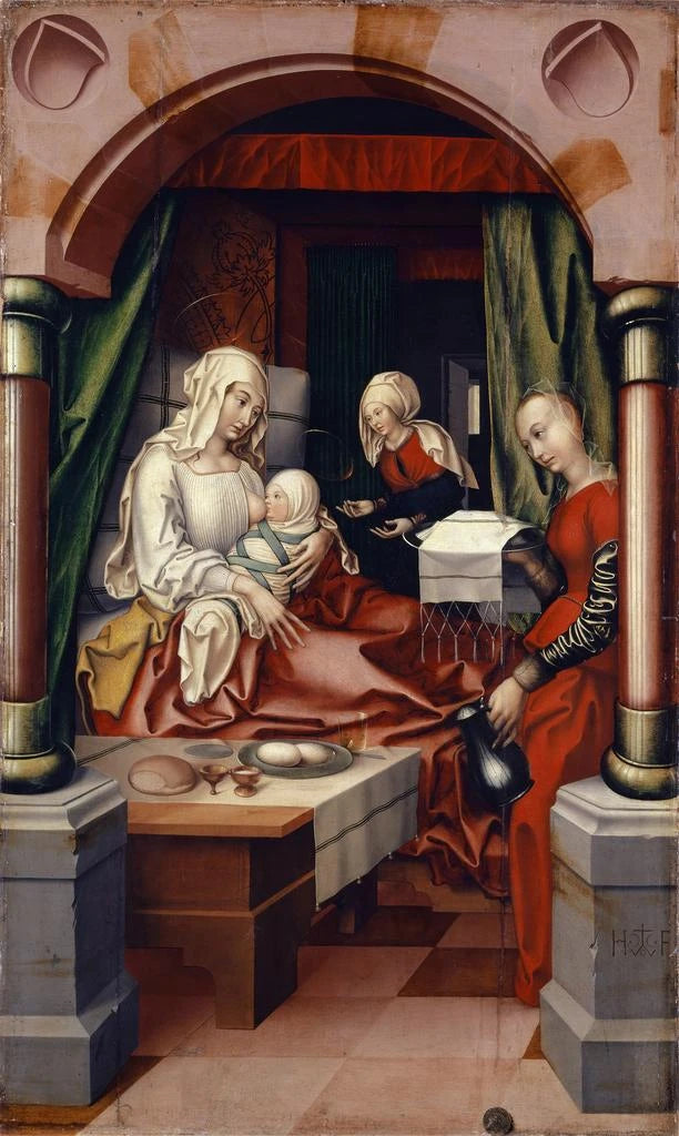 La "Naissance de la Vierge" de Hans Fries est une œuvre qui capture l'essence même de la maternité divine. Dans cette scène empreinte de sérénité, la palette de couleurs douces et chaudes évoque une atmosphère de paix et de dévotion. Les figures sont disposées avec soin, chaque détail, des drapés aux expressions, témoignant d'une maîtrise technique remarquable. La lumière, subtilement diffusée, met en valeur les visages des personnages, créant une connexion émotionnelle avec le spectateur. Ce tableau invite à la contemplation, à la réflexion sur la beauté et la pureté de la naissance.