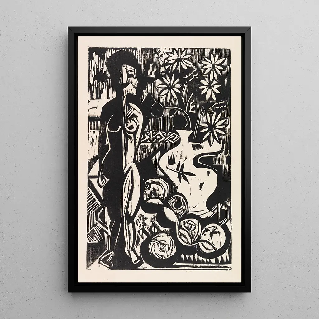 Artista emblemático de principios del siglo XX, Ernst Ludwig Kirchner jugó un papel clave en el desarrollo del expresionismo. Nacido en 1880, fue influenciado por los movimientos vanguardistas y buscó capturar la esencia de la vida moderna a través de sus obras. Kirchner exploró a menudo temas relacionados con la naturaleza, la ciudad y la condición humana, integrando también elementos de su propia experiencia. "Nature morte avec sculpture" demuestra su habilidad para fusionar objetos cotidianos con un enfoque artístico, revelando así la belleza oculta en lo banal.