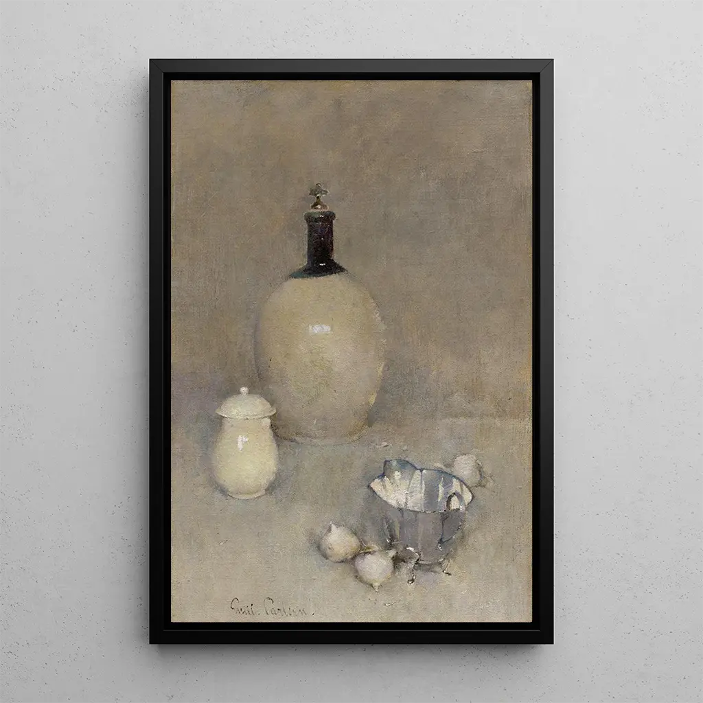 Emil Carlsen, pintor de origen danés, supo imponerse como una figura importante del realismo a principios del siglo XX. Influenciado por los grandes maestros de la naturaleza muerta, desarrolló un estilo único que combina precisión técnica y sensibilidad poética. Radicado en Estados Unidos, Carlsen logró integrar elementos de la luz americana en sus obras, enriqueciendo así su repertorio. Su capacidad para capturar la belleza de los objetos ordinarios, otorgándoles una dimensión casi espiritual, marcó su época. La naturaleza muerta es uno de los géneros en los que sobresale, demostrando su talento indiscutible y su mirada aguda sobre el mundo.