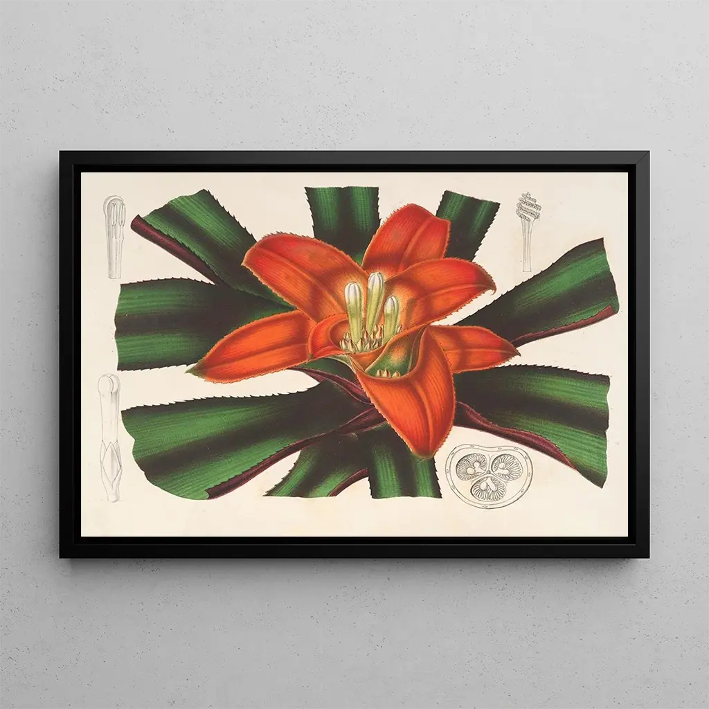 Nidularium Innocentii : una maravilla botánica para descubrir El cuadro Nidularium Innocentii, obra de Charles Antoine Lemaire, es una verdadera oda a la naturaleza. Esta impresión artística destaca la belleza de las plantas exóticas, con colores vibrantes y una composición armoniosa. Las tonalidades de verde, rojo y amarillo se combinan para crear una atmósfera viva y relajante. La técnica de Lemaire, que combina precisión y sensibilidad, permite capturar la esencia misma de esta planta tropical. Cada detalle está cuidadosamente representado, invitando al espectador a sumergirse en un universo vegetal rico y fascinante. Charles Antoine Lemaire : un pionero del arte botánico Charles Antoine Lemaire, botánico y artista del siglo XIX, supo fusionar ciencia y arte en sus obras. Influenciado por los descubrimientos botánicos de su época, dedicó su vida al estudio y a la representación de las plantas. Su estilo, en la encrucijada de la ilustración científica y el arte, marcó una época en la que la fascinación por la naturaleza alcanzaba su apogeo. Lemaire también contribuyó a la difusión del conocimiento botánico a través de sus publicaciones, convirtiéndolo en una figura imprescindible en el campo de la impresión artística. Una adquisición decorativa con múltiples ventajas La impresión artística del Nidularium Innocentii es una pieza decorativa ideal para aportar un toque de verdor a su interior. Ya sea en una sala de estar, una oficina o un dormitorio, este cuadro aporta un ambiente sereno y natural. Su calidad de impresión garantiza fidelidad en los colores y detalles de la obra original, además de ofrecer un atractivo estético indudable. Al elegir esta tela, opta por una decoración que combina elegancia y originalidad, celebrando la belleza de la naturaleza.