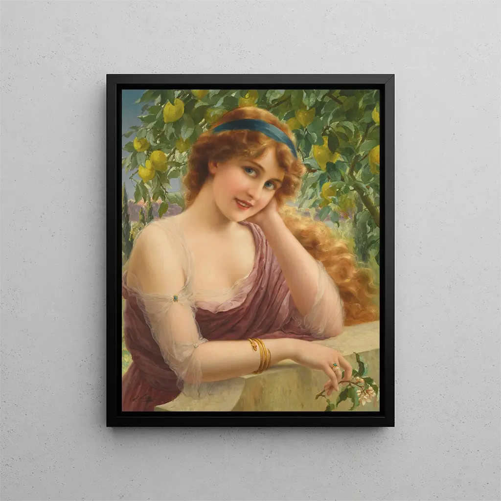 En el vasto universo del arte, algunas obras logran capturar la esencia misma de la belleza y la serenidad. "Fille au citronnier - Émile Vernon" es una de esas creaciones que evocan no solo una estética refinada, sino también una atmósfera impregnada de dulzura y nostalgia. Este lienzo, que representa a una joven con mirada soñadora, se encuentra delicadamente frente a un limón en flor, símbolo de una naturaleza exuberante y de una vida tranquila. El artista, con su habilidad para jugar con la luz y los colores, nos transporta a un mundo donde el tiempo parece suspendido, invitando al espectador a sumergirse en la escena con asombro.