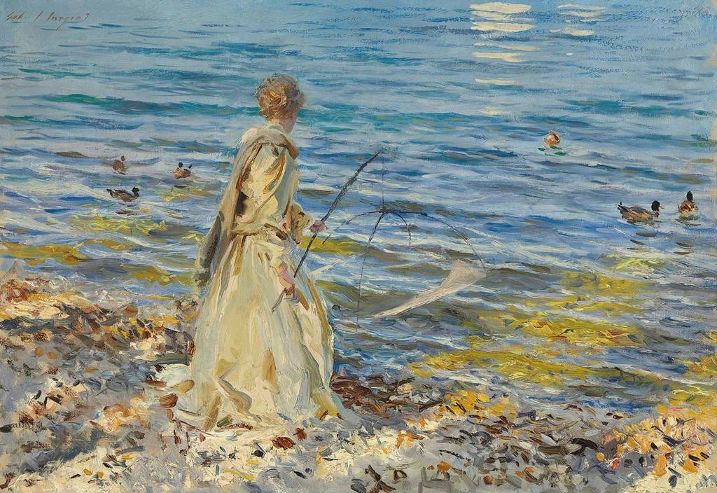 Fille pêchant : una escena de serenidad junto al agua En esta obra cautivadora, Fille pêchant, John Singer Sargent nos sumerge en un momento de tranquilidad, donde una joven, concentrada, intenta atrapar un pez. La suave luz del sol se refleja en el agua, creando destellos brillantes que añaden a la atmósfera pacífica de la escena. Los colores pastel, con matices de azul y verde, evocan una sensación de calma y frescura. La técnica de Sargent, caracterizada por pinceladas fluidas y una atención meticulosa a los detalles, da vida a esta composición, resaltando la belleza natural del paisaje circundante. John Singer Sargent : maestro del retrato y de la luz John Singer Sargent, nacido en 1856, es reconocido como uno de los más grandes artistas del retrato de su época. Formado en París, fue influenciado por los impresionistas, pero supo desarrollar un estilo único que combina realismo e impresionismo. Sargent viajó por Europa y Estados Unidos, capturando escenas de la vida cotidiana y retratos de personalidades influyentes. Fille pêchant, aunque menos conocida que sus retratos, ilustra su talento para capturar momentos fugaces y la belleza de la naturaleza. Esta impresión artística testimonia su habilidad para jugar con la luz y la sombra, una característica esencial de su trabajo. Una adquisición decorativa con múltiples ventajas La impresión artística de Fille pêchant es una pieza decorativa que encaja perfectamente en diversos espacios, ya sea en un salón, una oficina o un dormitorio. Su calidad de impresión y fidelidad a los colores originales la convierten en una elección ideal para quienes desean aportar un toque artístico a su interior. Este cuadro evoca serenidad y contemplación, invitando a la ensoñación y a la evasión. Con su atractivo estético indiscutible, esta obra será del agrado de los amantes del arte y de los principiantes, enriqueciendo así su decoración con una obra atemporal.