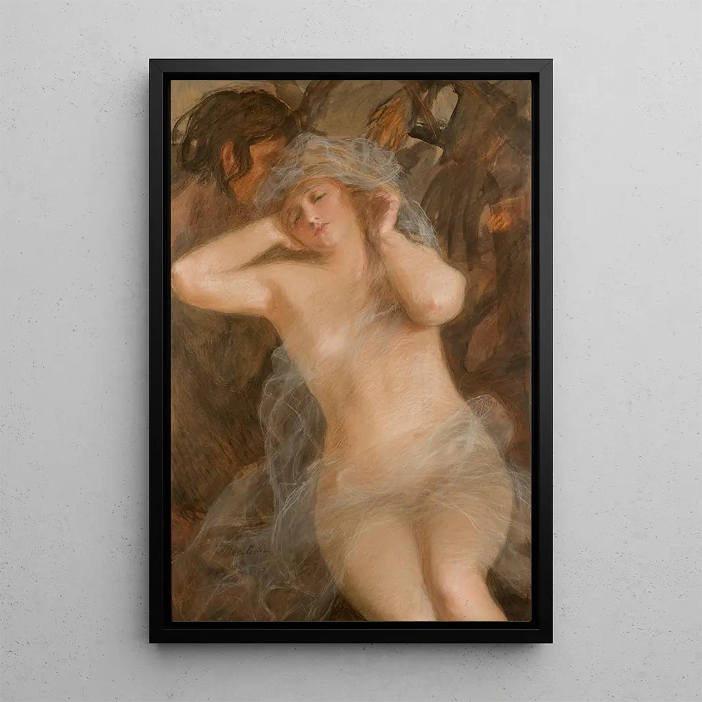 La impresión artística de Nymphe et Satyre nos transporta a un mundo mitológico donde la sensualidad y la naturaleza se encuentran. Esta obra de Teodor Axentowicz, rica en colores y texturas, evoca una atmósfera a la vez cautivadora y misteriosa. Las figuras, delicadamente representadas, parecen cobrar vida bajo el pincel del artista, creando una interacción casi tangible entre los personajes. Los tonos suaves de la piel contrastan con los verdes exuberantes del escenario, resaltando la belleza de las formas y la fluidez de los movimientos. Esta obra invita a explorar los temas del amor y la naturaleza, celebrando al mismo tiempo la gracia de la mitología.