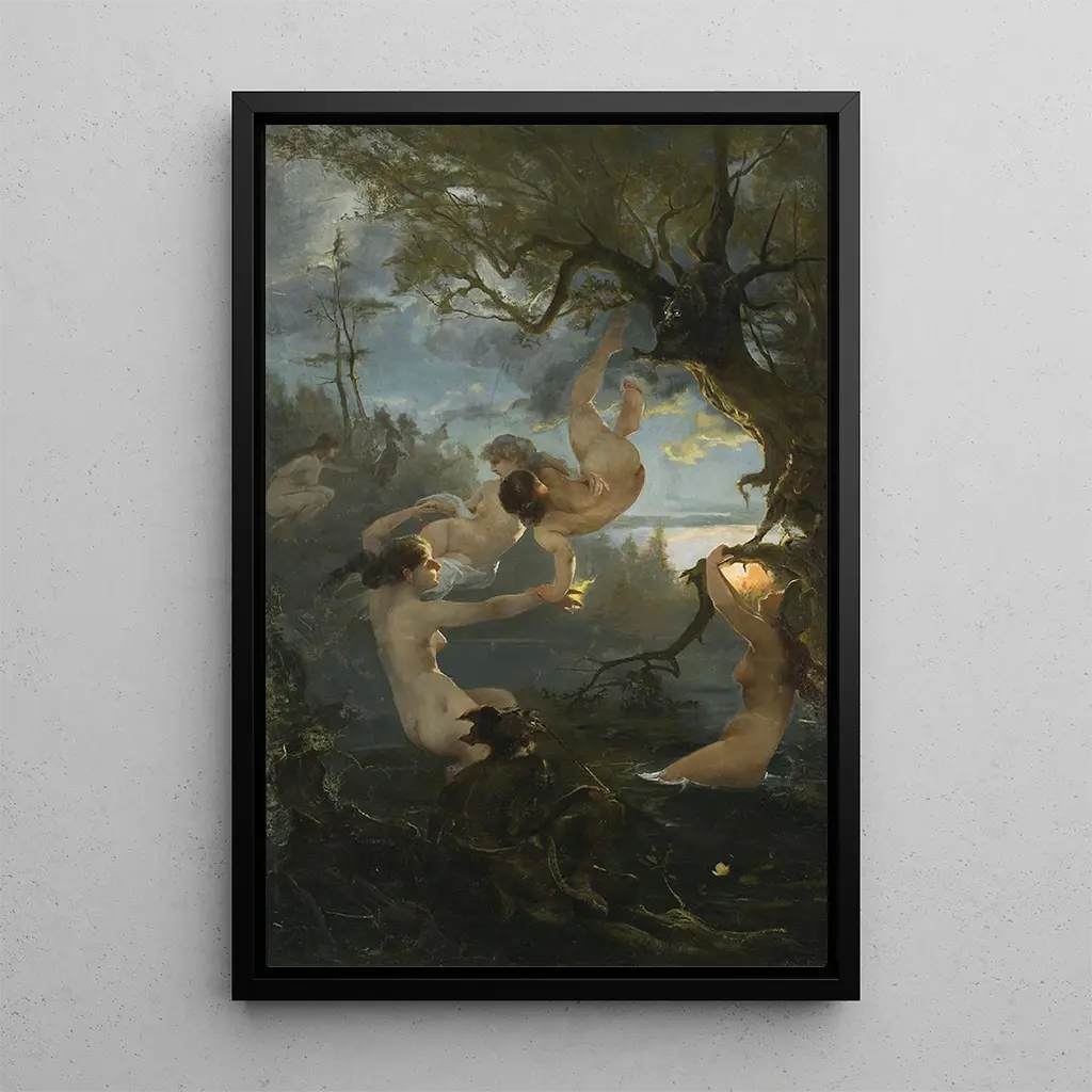 Witold Pruszkowski, activo a finales del siglo XIX, es un pintor polaco reconocido por su estilo simbolista y sus representaciones de la naturaleza. Influenciado por los movimientos artísticos europeos de su época, supo integrar elementos de misterio y poesía en sus obras. Pruszkowski ha explorado a menudo temas relacionados con la mitología y la feminidad, buscando capturar la esencia del alma humana a través de paisajes encantadores. Su trabajo, aunque menos conocido que el de algunos contemporáneos, ha dejado una huella duradera en el arte polaco, testimoniando una sensibilidad única y una maestría técnica indudable.