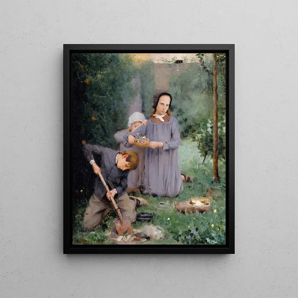 Reproducción artística de "Niños enterrando un pájaro" de Julian Alden Weir, perfecta para decorar con elegancia y sofisticación. Esta impresión en lienzo o póster captura la ternura y la inocencia de la infancia, ideal para embellecer cualquier espacio de tu hogar u oficina. Disponible en varios tamaños y acabados de alta calidad, esta obra es una adición imprescindible para los amantes del arte clásico y contemporáneo. Añade un toque de cultura y sensibilidad a tu colección con esta magnífica reproducción artística.