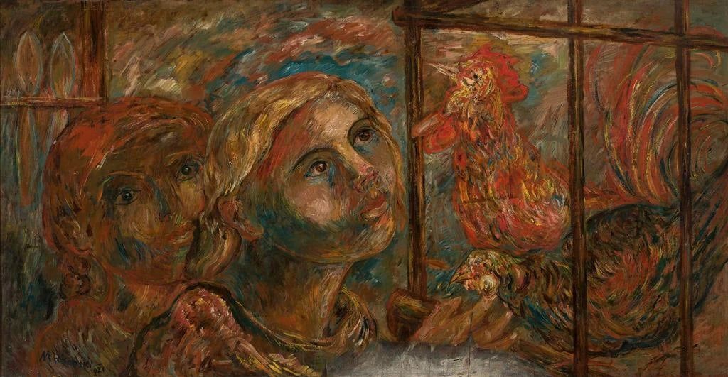 Niños y gallos - Tadeusz Makowski