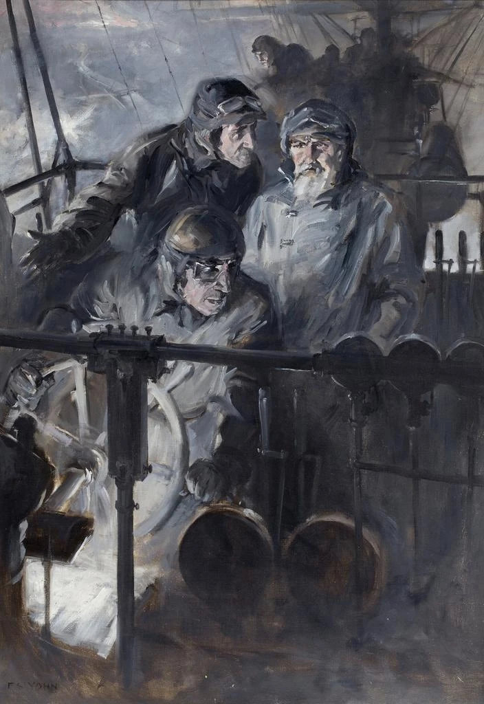 Frederick Coffay Yohn, activo a principios del siglo XX, es reconocido por sus obras que ilustran temas históricos y militares. Influenciado por el movimiento realista, se especializó en la representación de escenas de batalla y momentos heroicos. Su trabajo ha sido frecuentemente encargado por instituciones militares, lo que demuestra la importancia de su arte en el contexto de la propaganda y la memoria colectiva. Yohn supo combinar técnica y narración, creando cuadros que no solo son representaciones visuales, sino que cuentan historias poderosas y evocadoras.
