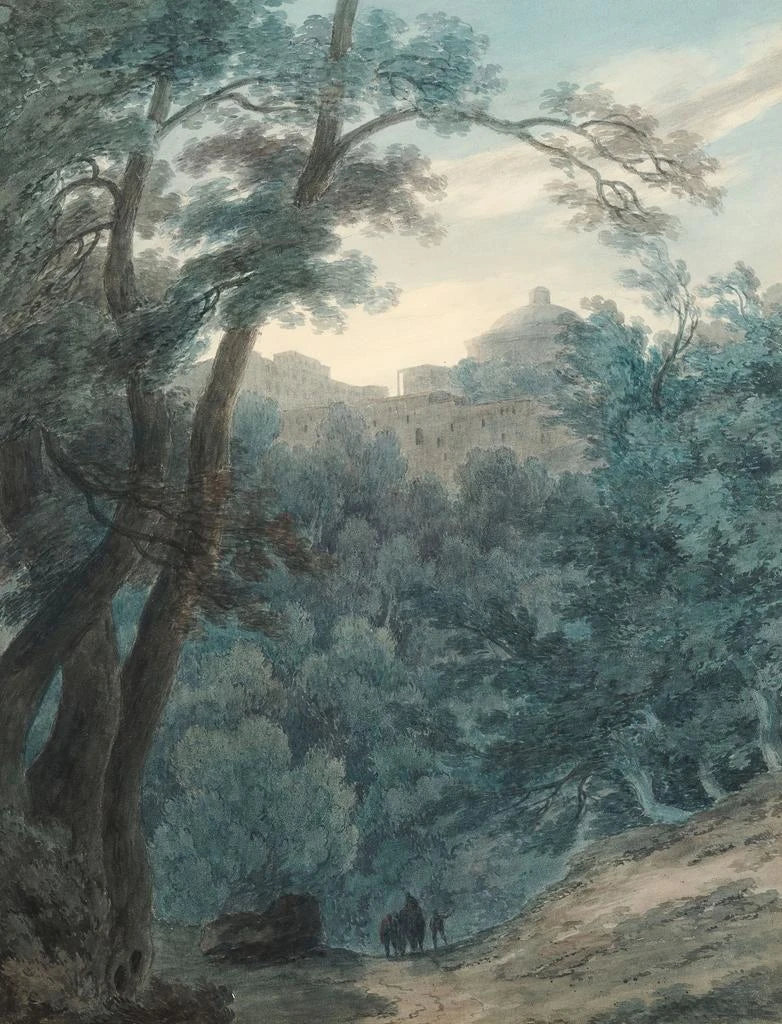 Paisaje boscoso y monasterio de Ariccia - John Robert Cozens