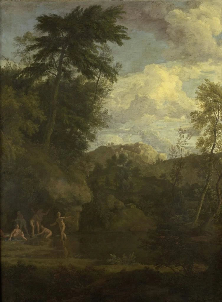 Paisaje arcadico con Diana en el baño - Johannes Glauber