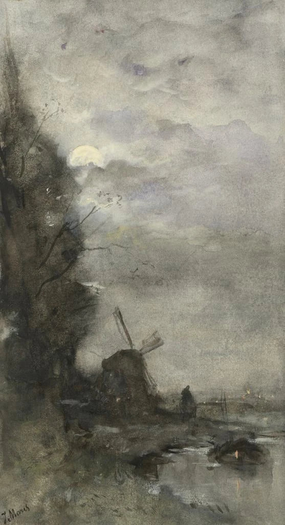 Jacob Maris, figura emblemática del siglo XIX, dejó su huella en la historia del arte neerlandés por su enfoque innovador. Nacido en 1837, fue influenciado por los paisajes de su país natal y por los movimientos artísticos europeos, especialmente el impresionismo. Maris supo capturar la belleza de las escenas rurales y las atmósferas cambiantes, convirtiéndose en un maestro de la luz y el color. "Paisaje con molino au clair de lune" refleja su talento para representar la naturaleza en toda su esplendor, evocando emociones profundas en el espectador.