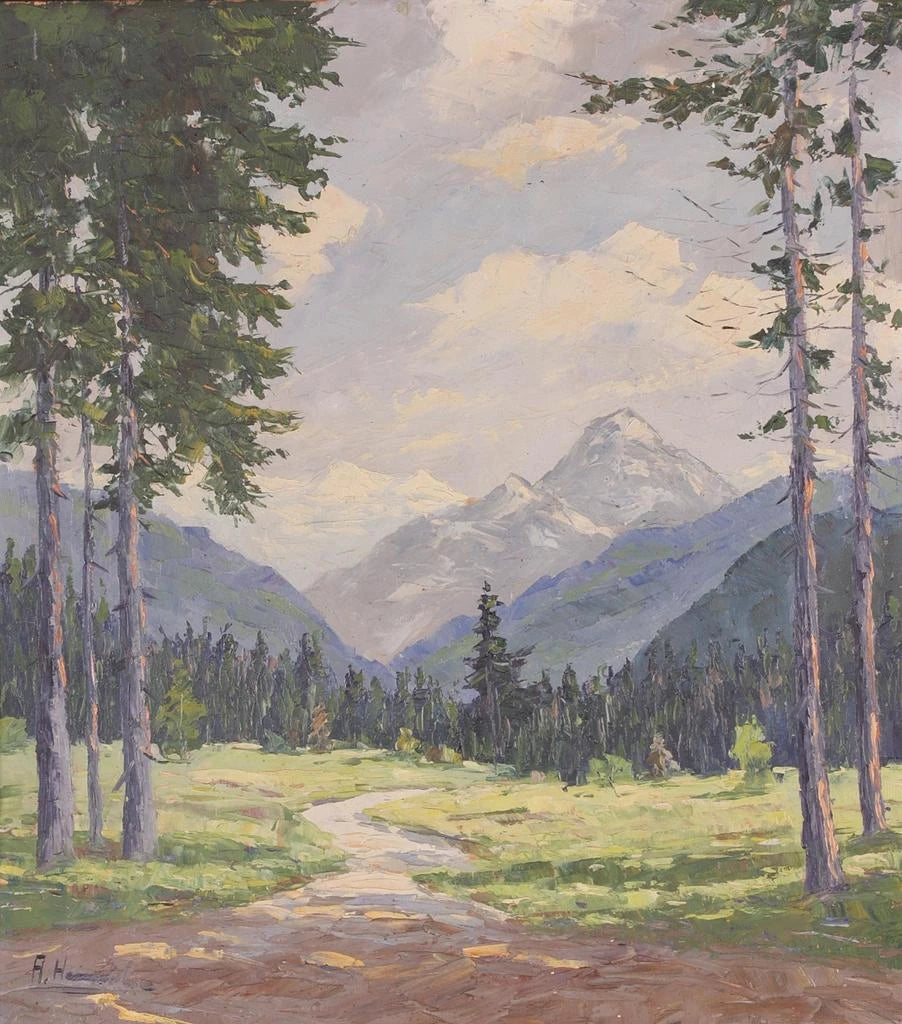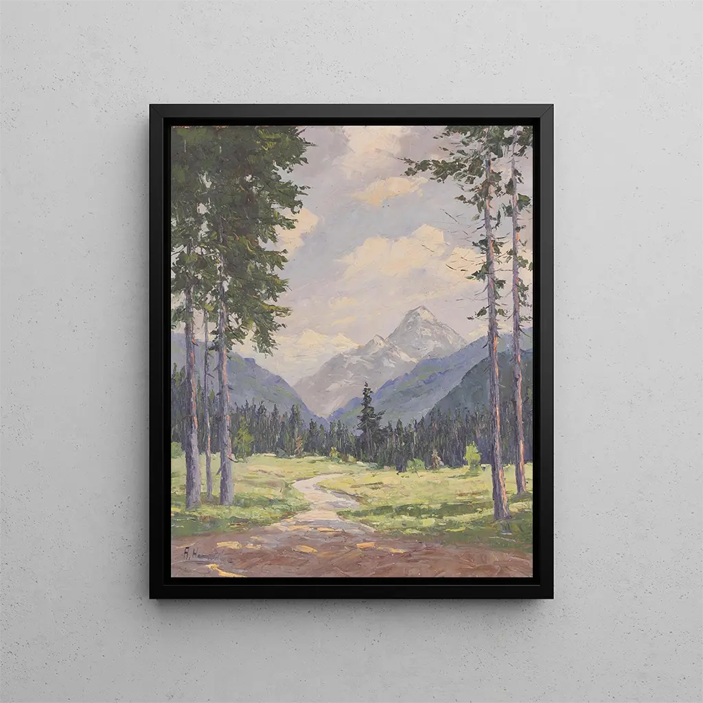 La obra "Almlandschaft" de Alois Hernick despierta una fascinación inmediata por su representación impactante de los paisajes alpinos. Este cuadro, que ilustra una vista panorámica de un valle alpino, transporta al espectador al corazón de la naturaleza, donde la belleza de las cumbres nevadas y los prados verdes se fusionan en perfecta armonía. Hernick logra capturar la serenidad y la majestuosidad de las montañas, invitando a cada uno a una contemplación profunda. La luz suave que baña la escena parece bailar sobre las superficies, creando una atmósfera casi onírica. A través de esta obra, el artista nos ofrece no solo un paisaje, sino una experiencia sensorial inmersiva que resuena con las emociones más profundas.