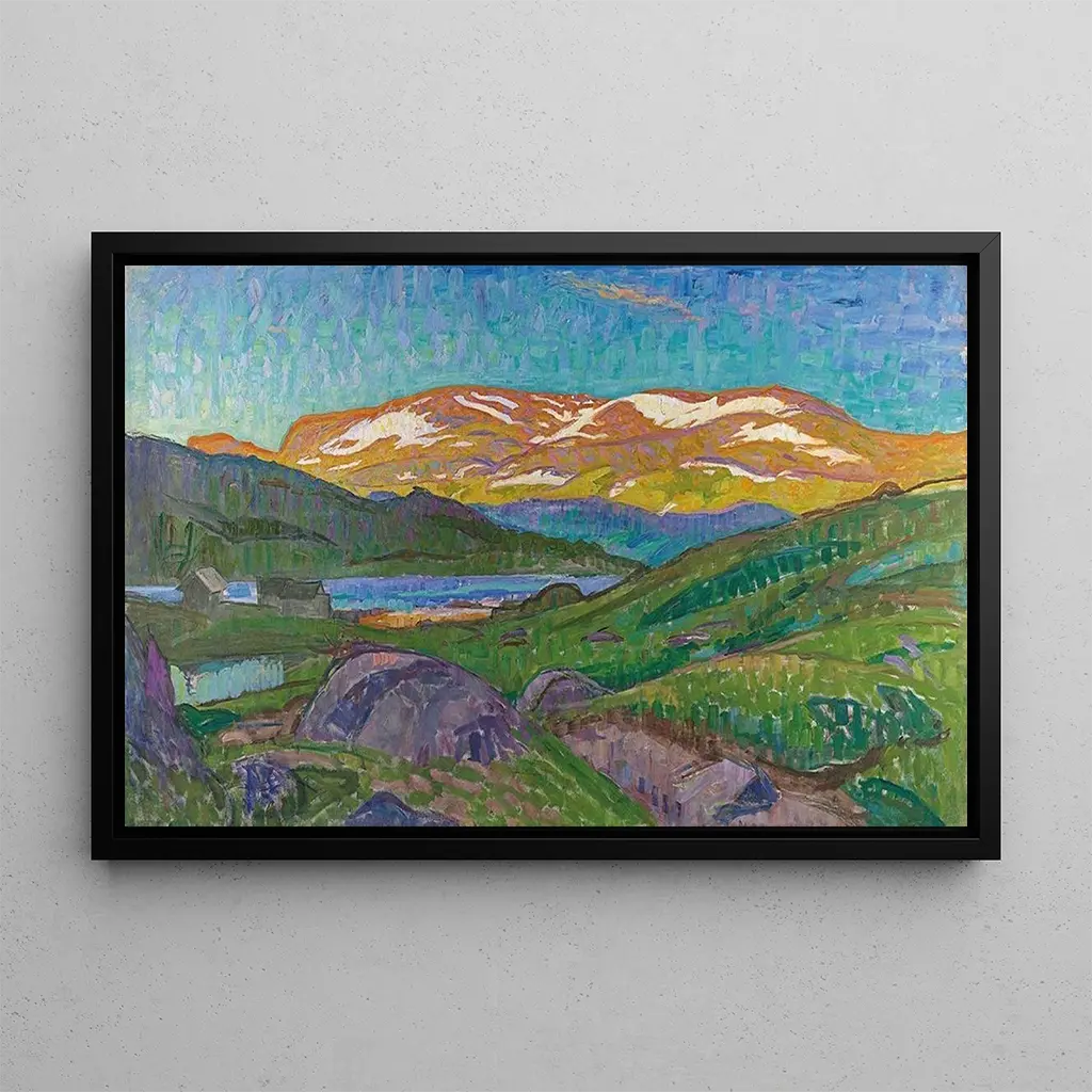 La impresión artística del "Paisaje de Gjendesheim" es una pieza decorativa ideal para diversos espacios, ya sea en una sala de estar, una oficina o un dormitorio. Su calidad de impresión garantiza fidelidad a los colores y detalles de la obra original, aportando además un toque de elegancia a su interior. Este cuadro invita a la contemplación y a la ensoñación, ofreciendo un punto focal relajante que enriquece el ambiente de su espacio vital. El atractivo estético de esta tela la convierte en una elección perfecta para quienes aprecian el arte y la naturaleza.