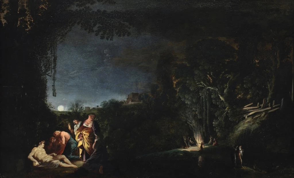 Paisaje lunar con motivo mitológico - Moyses van Uyttenbroeck