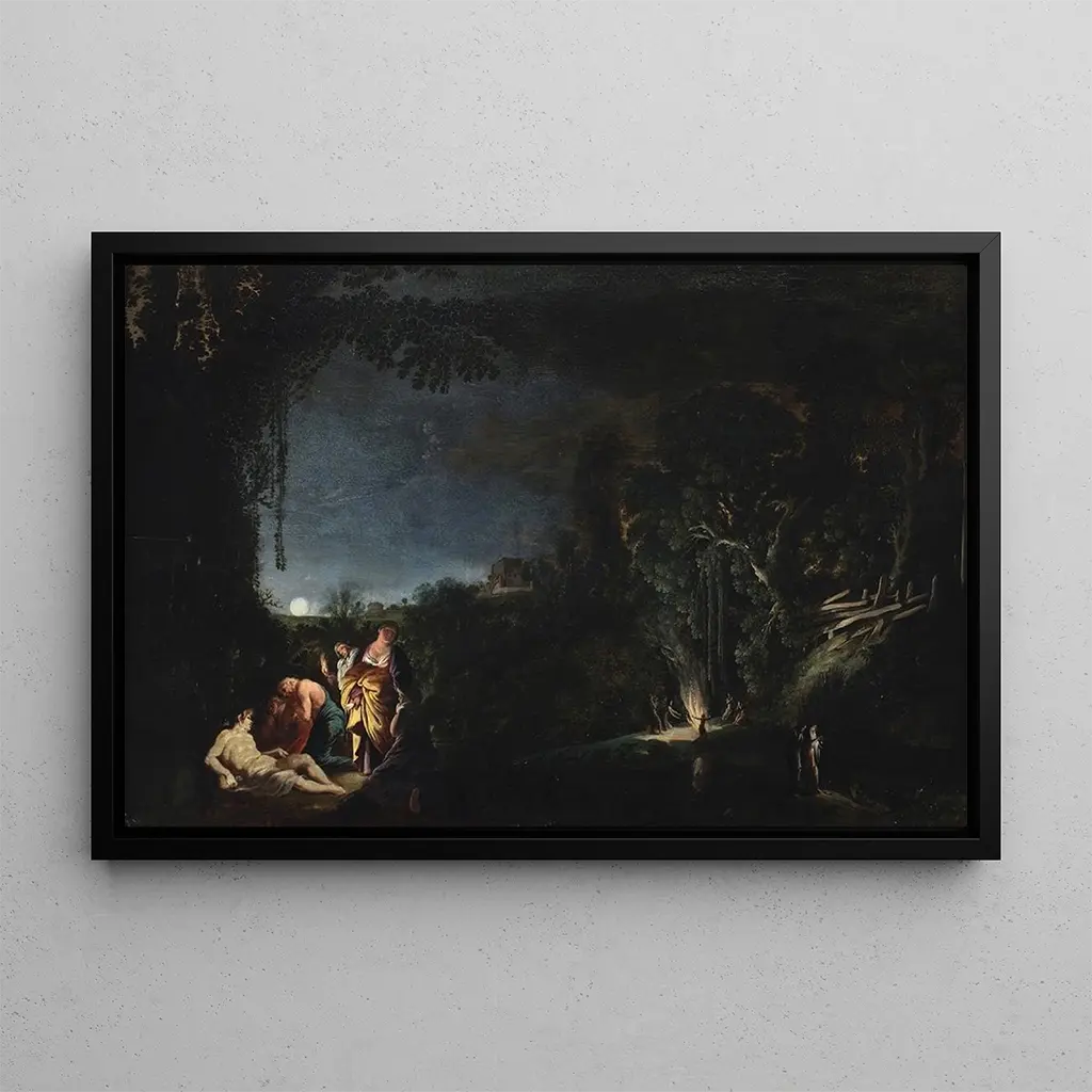 Paisaje lunar con motivo mitológico: una evasión onírica a la luz de la luna. Este cautivador cuadro de Moyses van Uyttenbroeck evoca una atmósfera mística, donde la luna ilumina un paisaje encantador. Los tonos plateados y azulados se mezclan armoniosamente, creando un contraste impactante con los motivos mitológicos que pueblan la tela. La técnica del artista, que combina delicadeza y detalles minuciosos, permite sumergirse en un universo donde el sueño y la realidad se confunden. Cada elemento, desde las nubes vaporosas hasta las siluetas míticas, invita a una contemplación profunda, ofreciendo una evasión hacia un mundo impregnado de magia. Moyses van Uyttenbroeck: un maestro del paisaje romántico. Artista flamenco del siglo XVII, Moyses van Uyttenbroeck es reconocido por sus paisajes llenos de poesía y misterio. Influenciado por el estilo barroco, supo capturar la belleza de la naturaleza mientras incorporaba elementos mitológicos que enriquecen sus obras. Su estilo, caracterizado por juegos de luz y composiciones dinámicas, refleja una sensibilidad única hacia el entorno. Van Uyttenbroeck dejó un legado duradero en el mundo del arte, inspirando a numerosos artistas a lo largo de los siglos a explorar temas de la naturaleza y lo fantástico. Una adquisición decorativa con múltiples ventajas. La impresión artística de este cuadro "Paisaje lunar con motivo mitológico" resulta ser una elección decorativa ideal para diversos espacios como la sala, la oficina o el dormitorio. Su calidad de impresión garantiza una fidelidad notable a los detalles originales, permitiendo disfrutar plenamente del atractivo estético de la obra. Al integrar esta tela en tu decoración, aportas un toque de elegancia y misterio, creando una atmósfera propicia para la ensoñación y la contemplación. Este cuadro cautivará a los amantes del arte y enriquecerá tu interior con una dimensión poética.