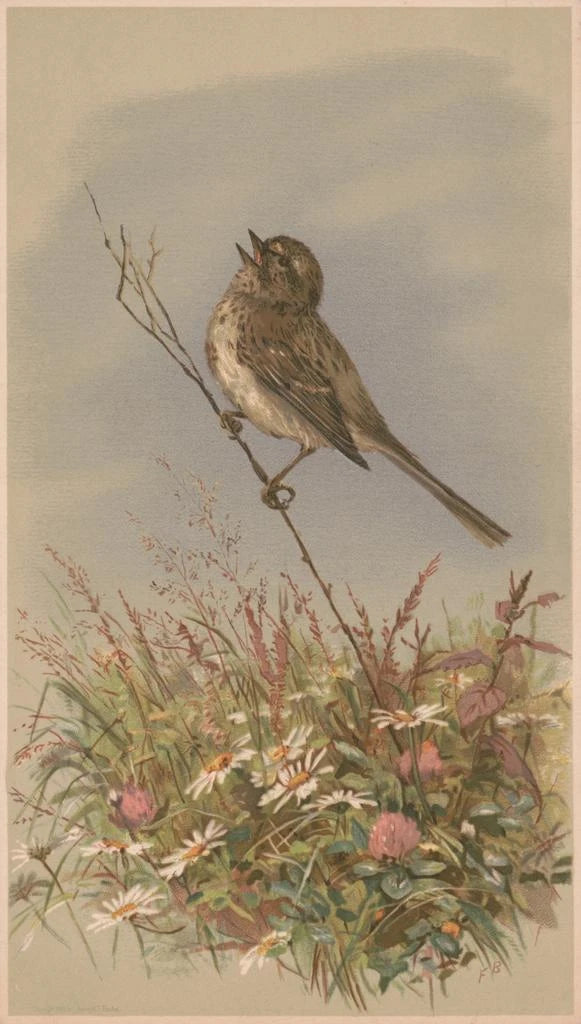 Cuadro Pájaro sobre un tallo cantando - Fidelia Bridges | Impresión artística