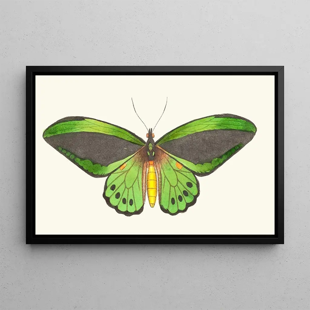 Papilio priamus : un ballet de colores y ligereza La impresión artística de Papilio priamus, obra emblemática de George Shaw, nos sumerge en un universo vibrante donde la naturaleza florece. Este cuadro, que representa una mariposa majestuosa, se distingue por sus tonos brillantes de verde, azul y negro, creando un contraste impactante. La técnica de acuarela, utilizada con delicadeza, confiere a la obra una atmósfera aérea y delicada. Los detalles minuciosos de las alas de la mariposa, casi translúcidas, parecen capturar la luz, invitando al espectador a admirar la belleza efímera de esta criatura. Esta impresión artística se convierte así en una verdadera oda a la naturaleza y a la fragilidad de la vida. George Shaw : un pionero de la ilustración naturalista George Shaw, naturalista e ilustrador británico del siglo XVIII, desempeñó un papel crucial en la ilustración científica de la fauna y la flora. Evolucionando en una época en la que la exploración científica estaba en pleno auge, Shaw supo capturar la diversidad del mundo natural a través de sus obras. Influenciado por los descubrimientos de su tiempo, contribuyó al conocimiento de especies exóticas, especialmente a través de sus ilustraciones de mariposas. Su trabajo no solo enriqueció los conocimientos científicos, sino que también inspiró a numerosos artistas. La impresión artística de Papilio priamus testimonia su talento y su compromiso con la belleza de la naturaleza. Una adquisición decorativa con múltiples ventajas Optar por la impresión artística de Papilio priamus es elegir una pieza decorativa que sabrá realzar su interior. Ya sea en una sala de estar, una oficina o un dormitorio, este cuadro aportará un toque de elegancia y frescura. Su calidad de impresión garantiza una fidelidad a los colores y detalles de la obra original, ofreciendo un atractivo estético indudable. Al integrar esta tela en su decoración, crea un espacio donde la naturaleza y el arte se encuentran, invitando a la contemplación y a la evasión. Esta impresión artística no solo es una elección artística, sino también una forma de aportar una atmósfera serena e inspiradora a su entorno.